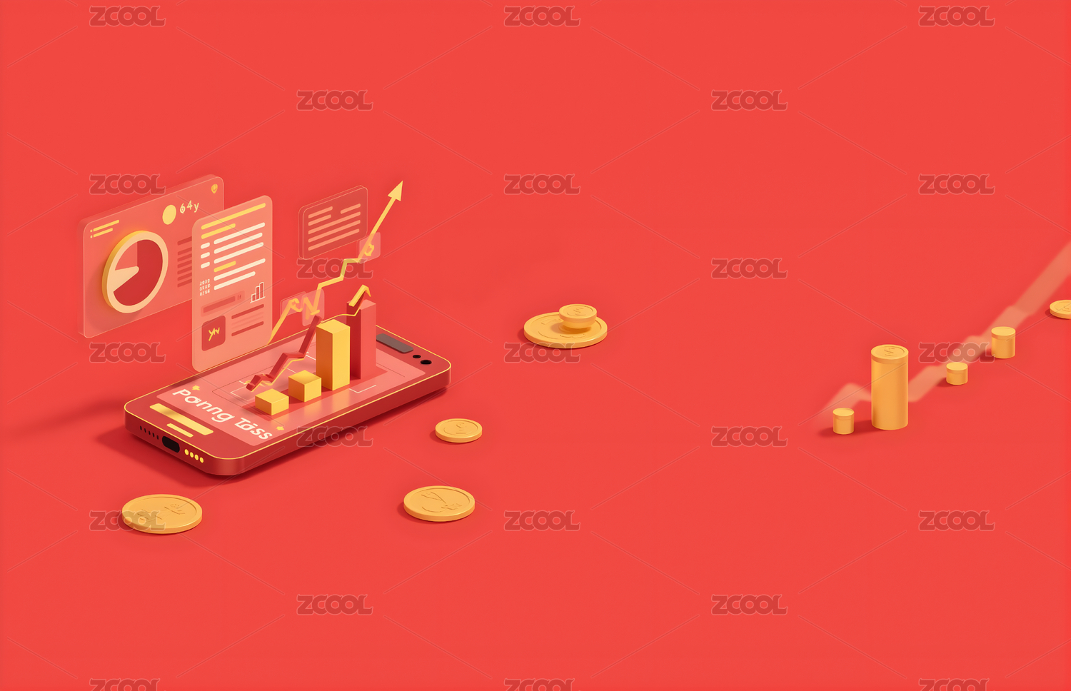 金融增长图表与金币
