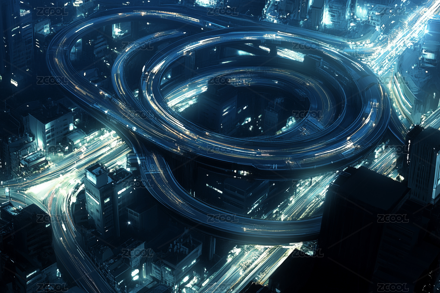 城市,交通,道路,桥梁,夜景,车流,灯光,立交,设计,线条