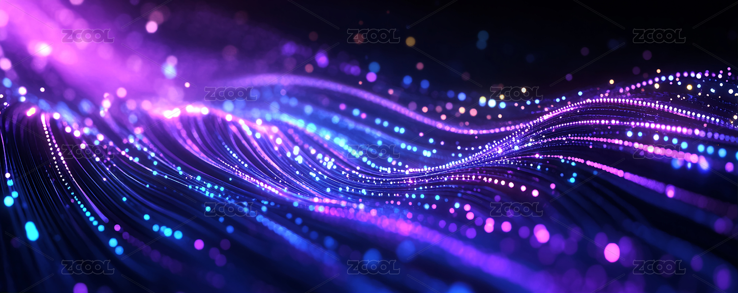 蓝紫渐变科技波形网格背景图,发光粒子