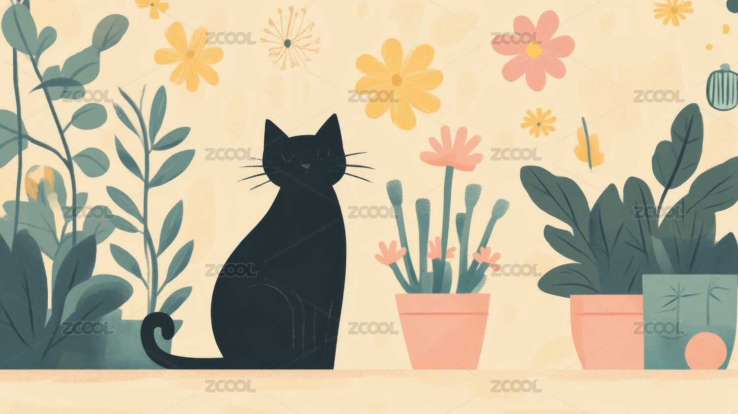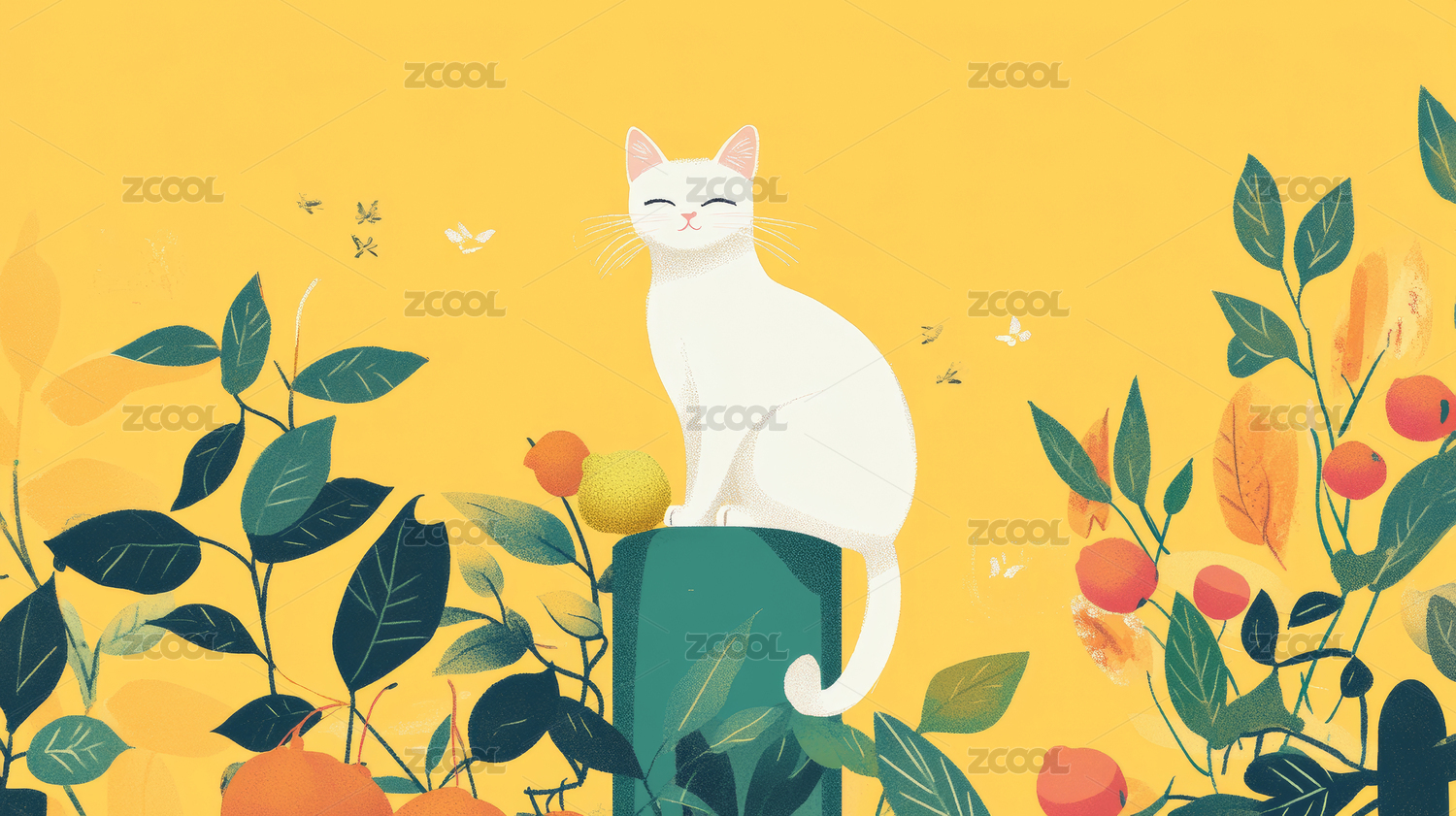 背景,卡通,插画,壁纸,可爱,宠物,动物,猫