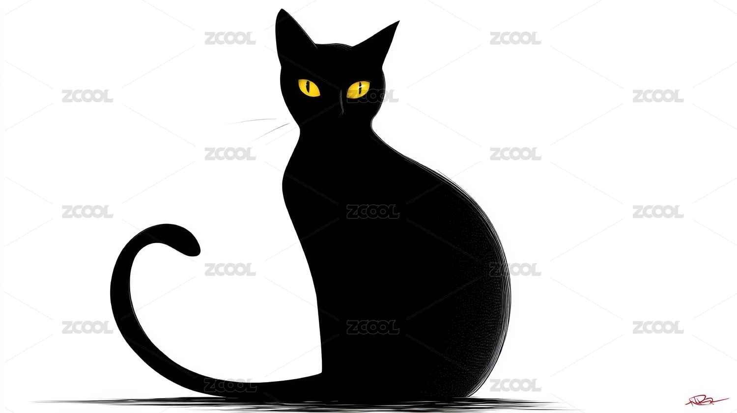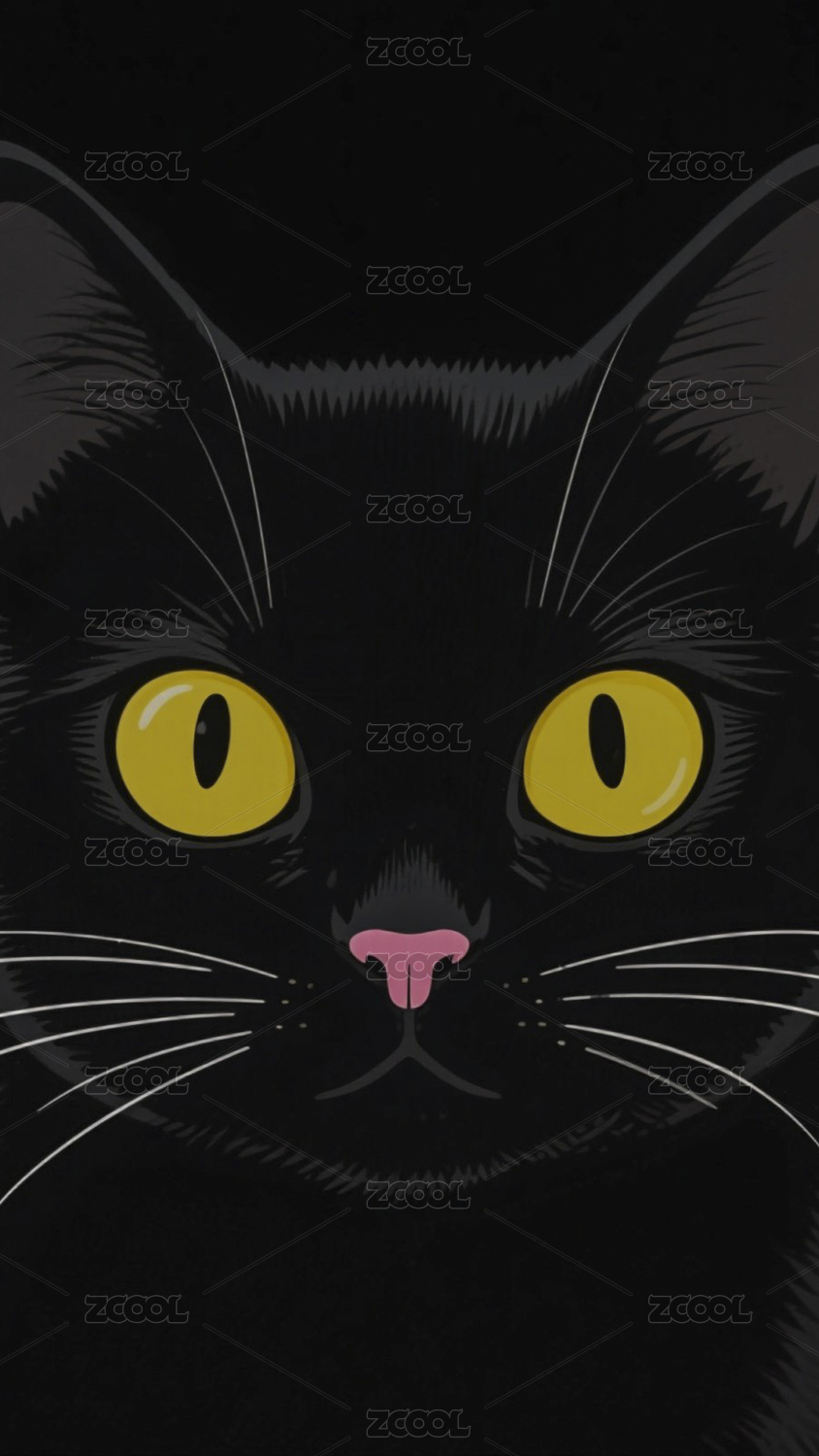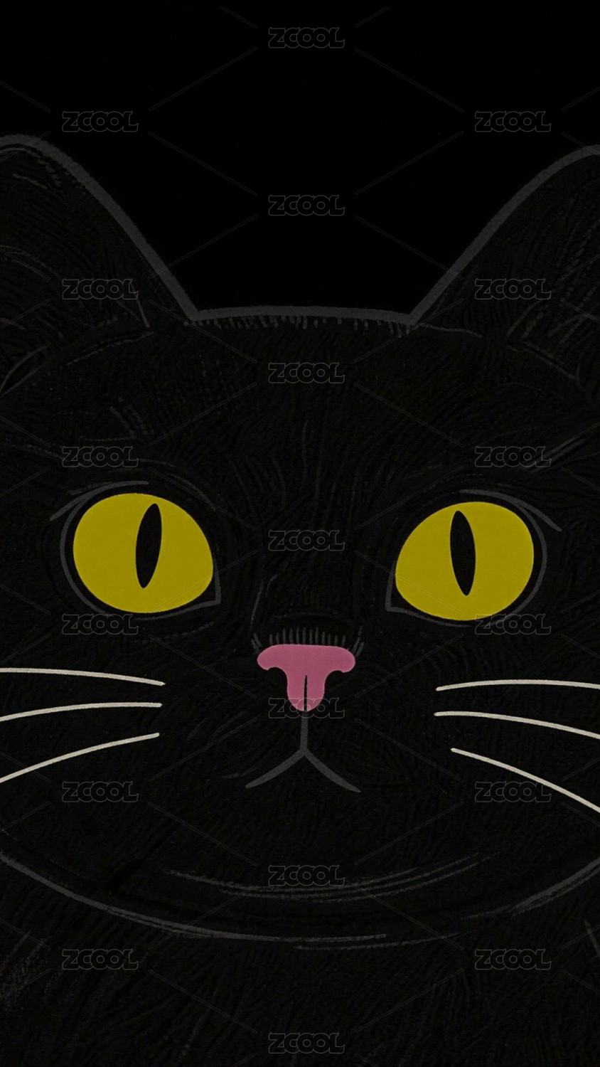 黑猫,神秘,砖墙,黄眼睛,插画,猫咪,阴影,场景,暗黑,氛围