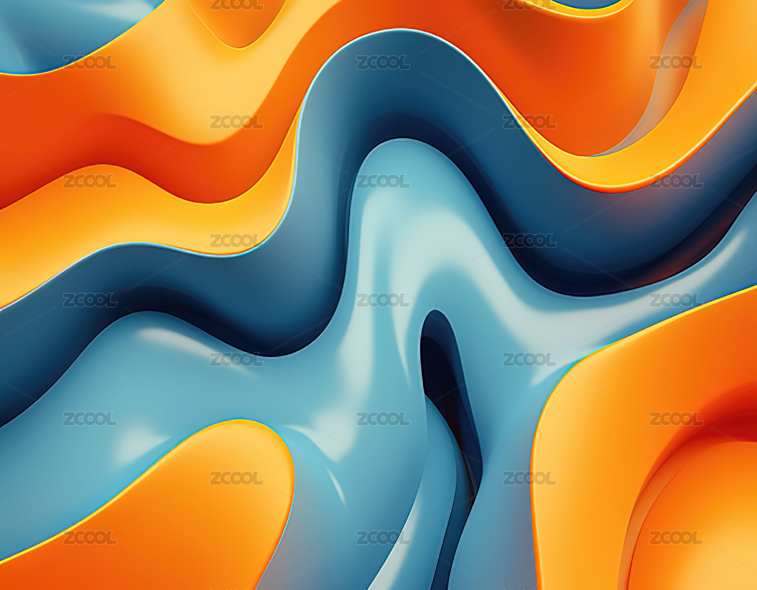 蓝橙流体渐变抽象艺术纹理图