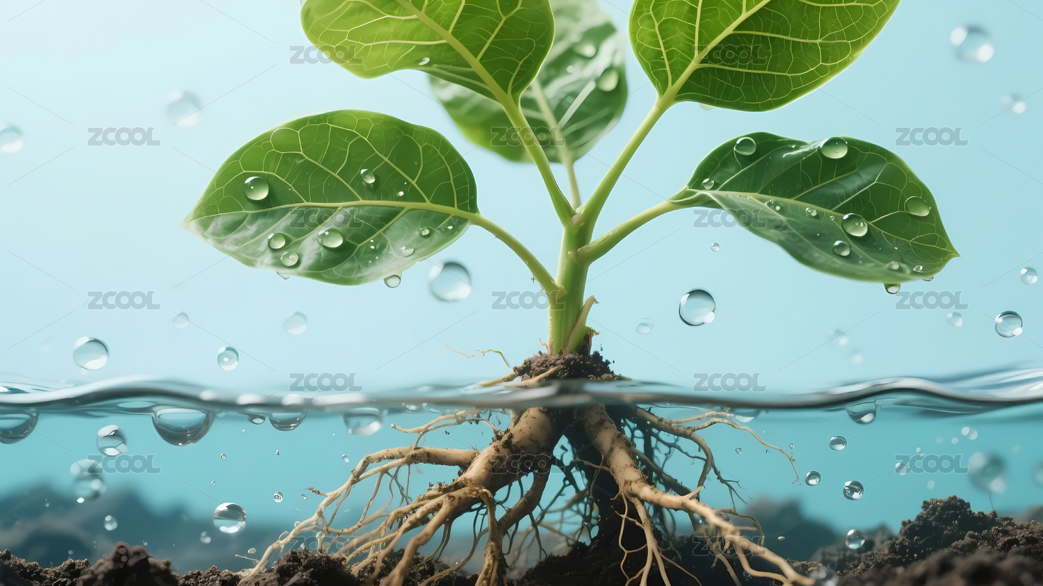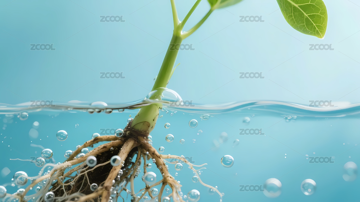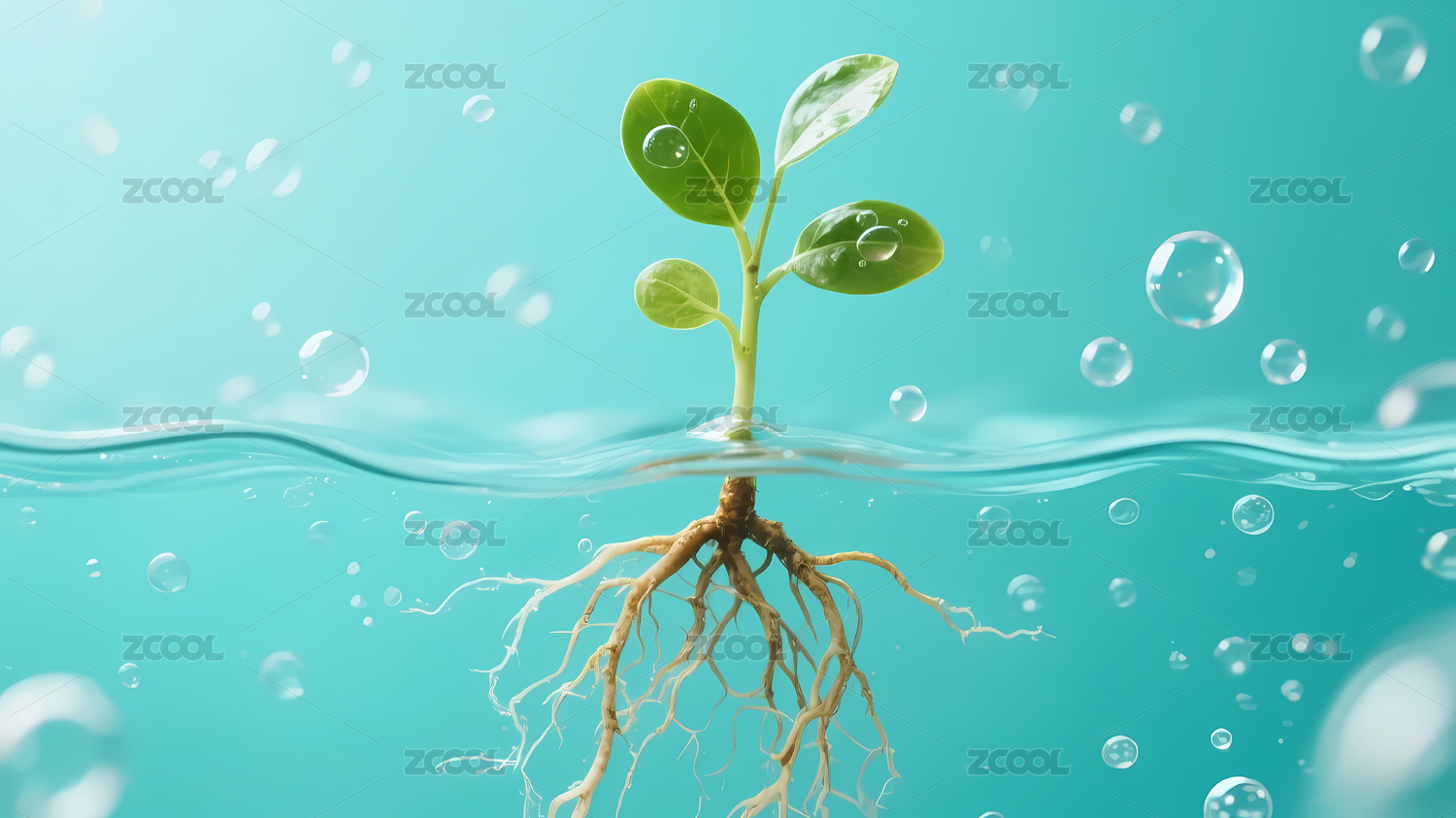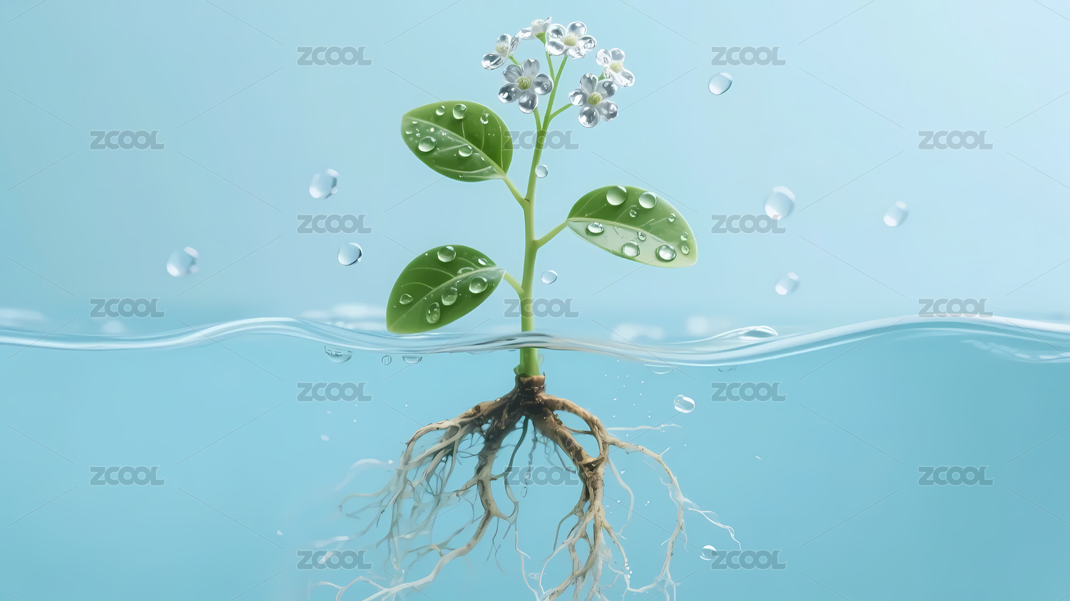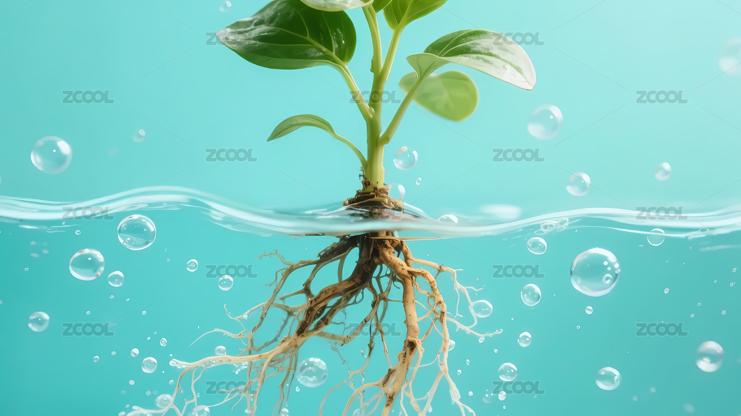 绿色,白色,背景,水面,植物,根系,水体,茎干,水中,浅蓝