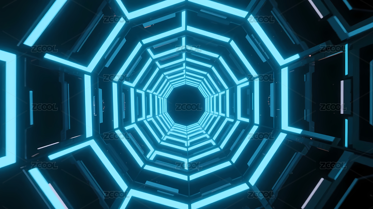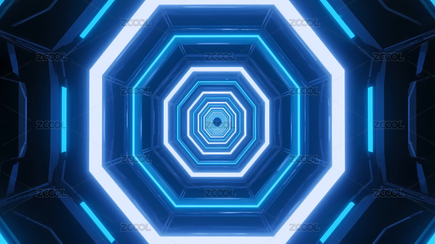 蓝色,科技,未来,结构,深色,八边形,隧道,霓虹,延伸,轮廓