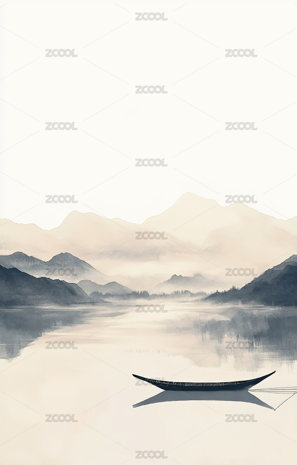 极简主义大面积留白山峦形状水面倒影背景