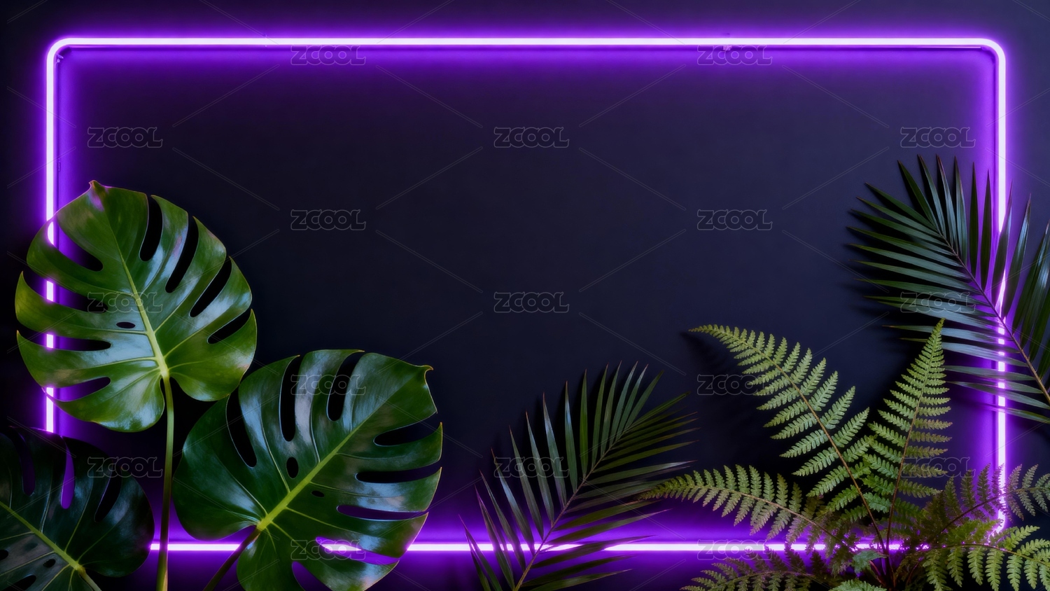 植物,紫色,深色,霓虹,热带,叶子,装饰,光效,框,点缀