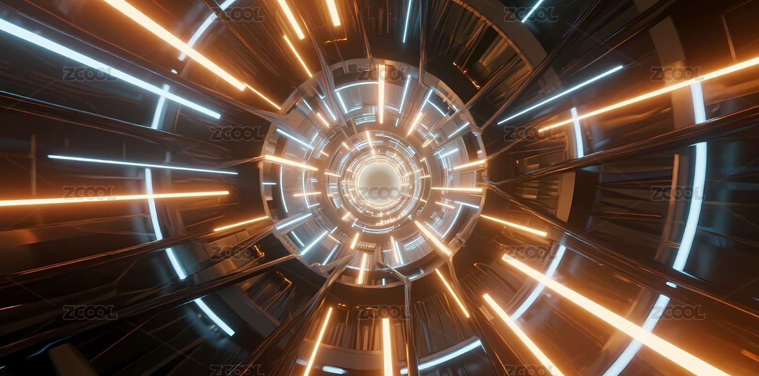 蓝橙光束未来隧道