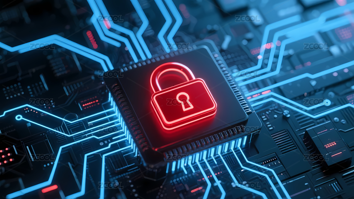 红色,蓝色,黑色,科技,电路板,锁形,发光,电线,元件,设计