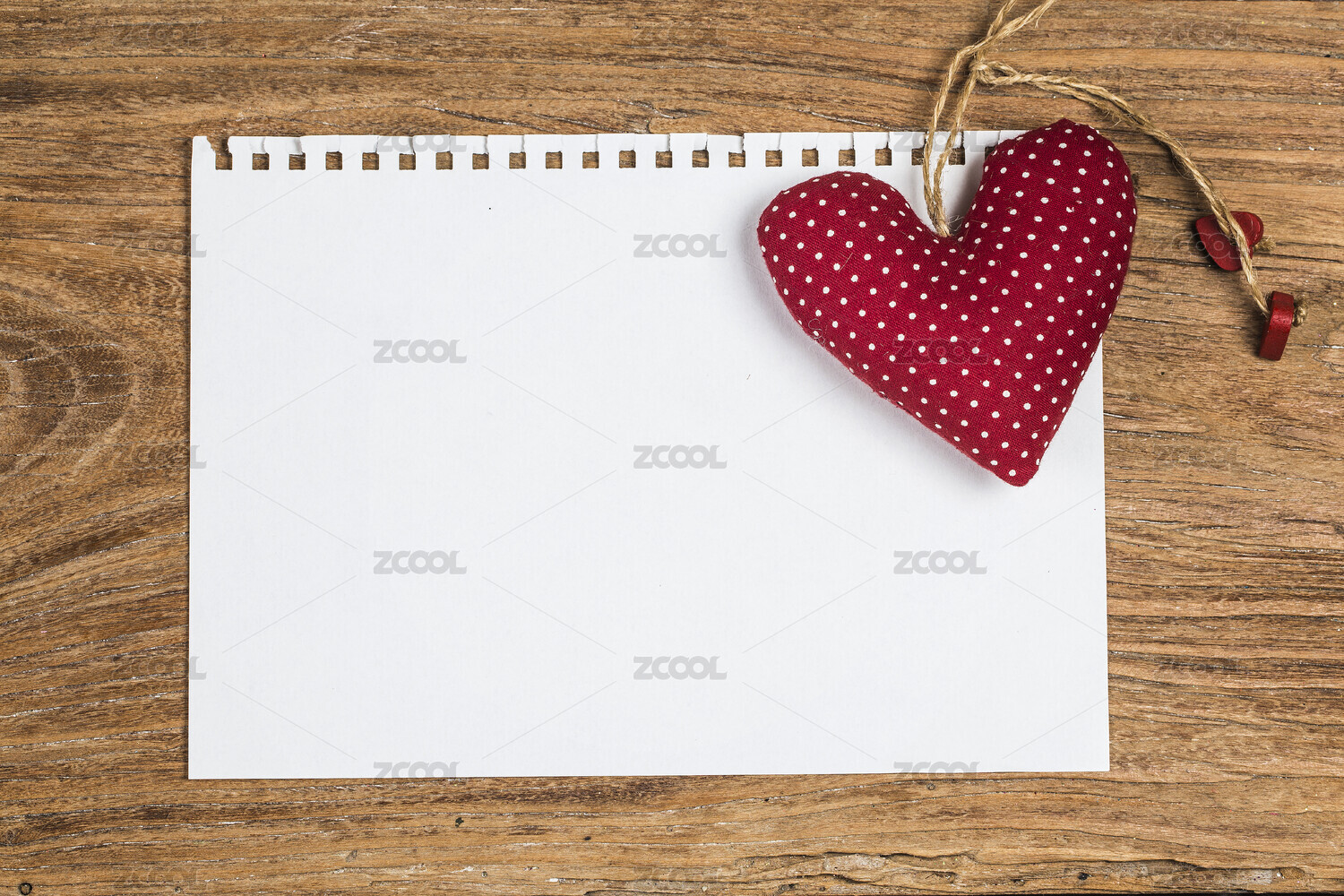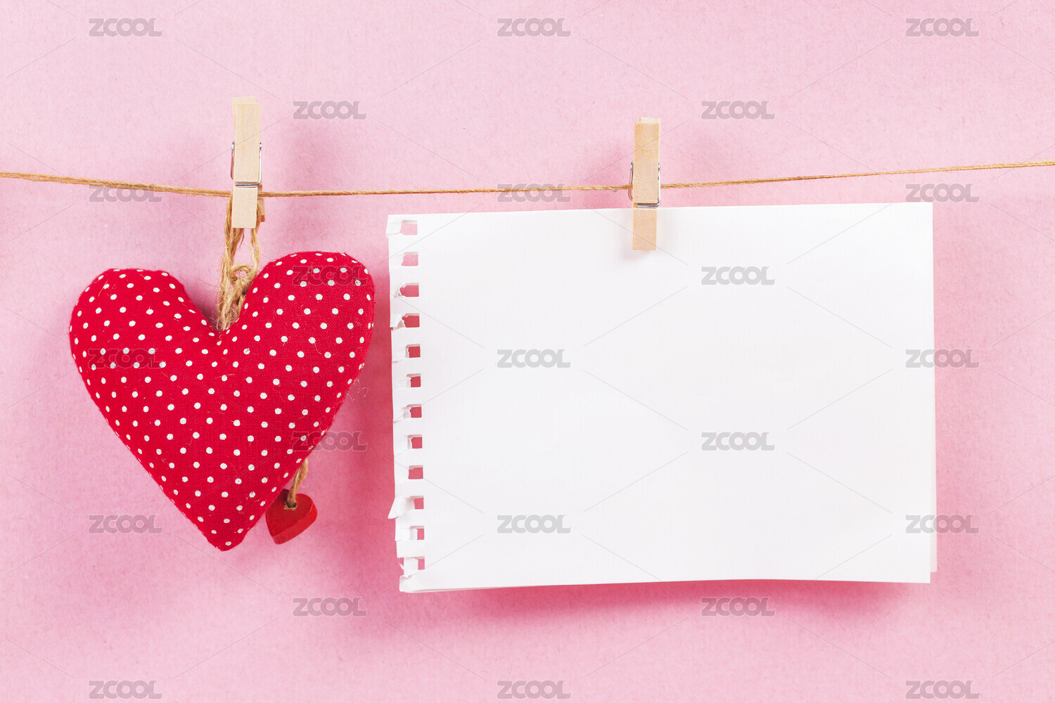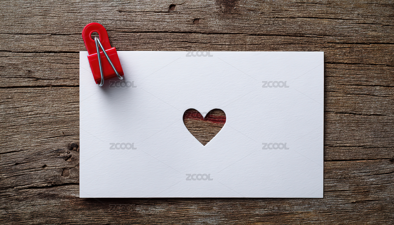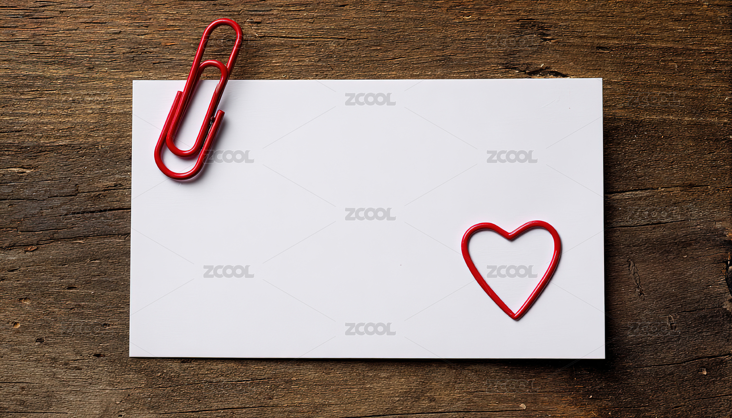 空白纸张与红色心形回形针