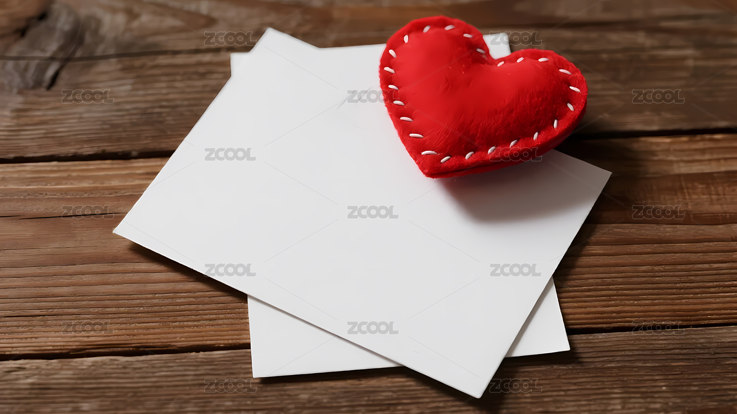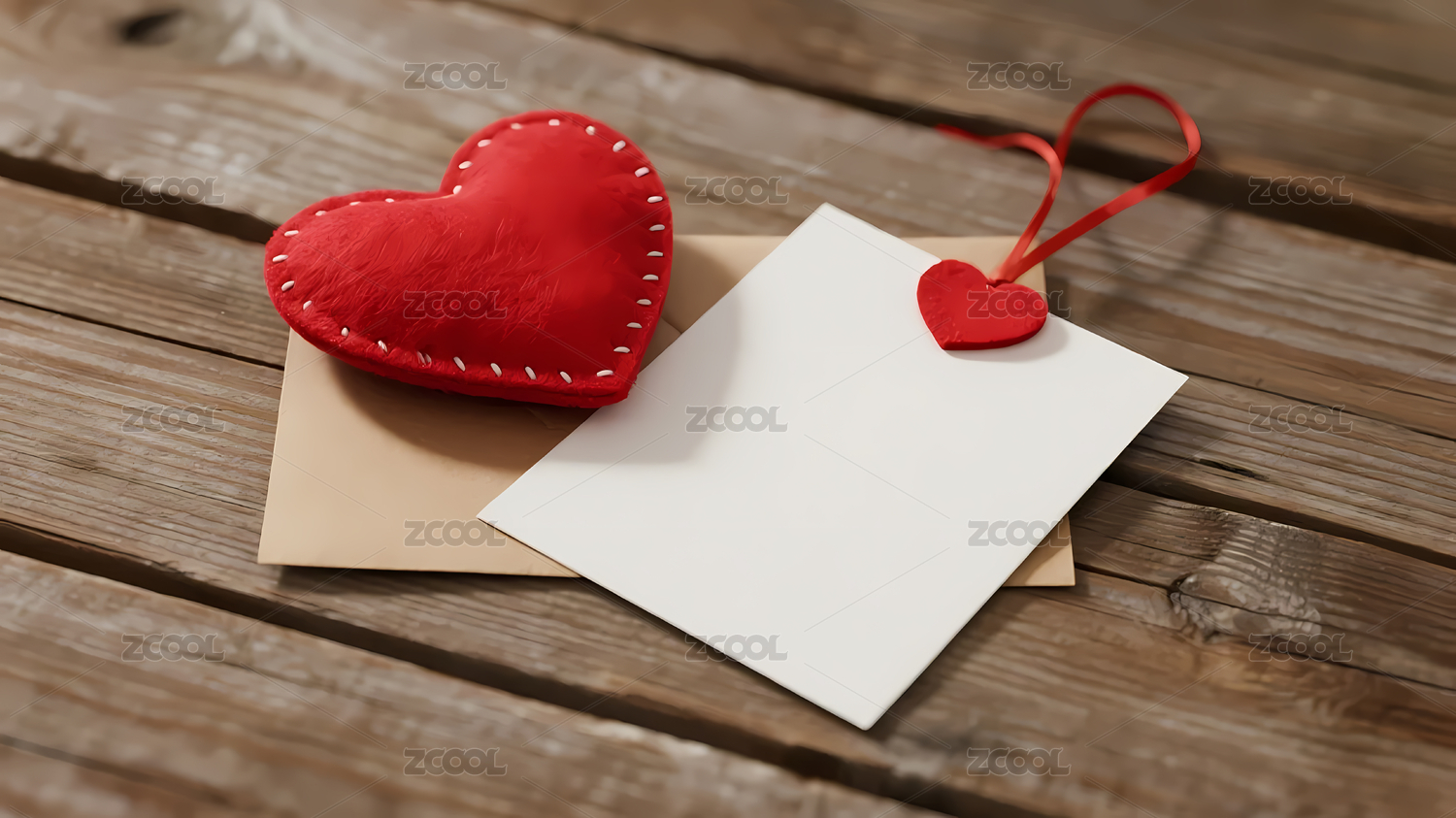 红心装饰白信封木桌