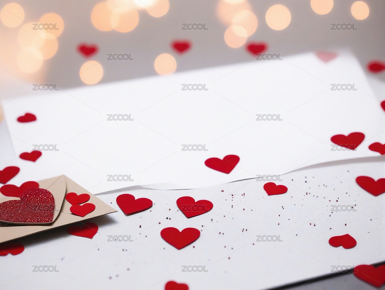 红色心形装饰围绕白纸