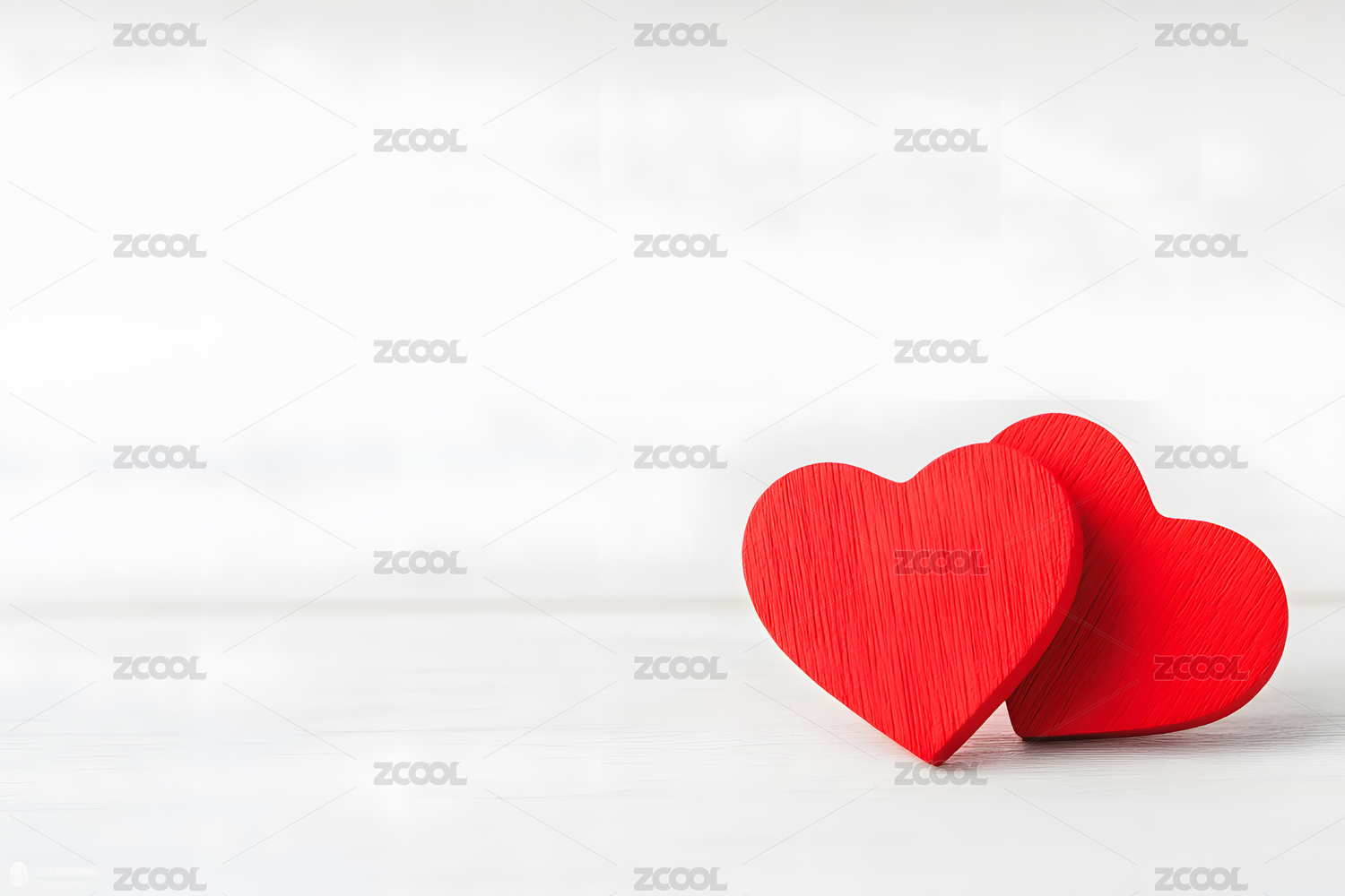两个木质的爱心图案三维渲染