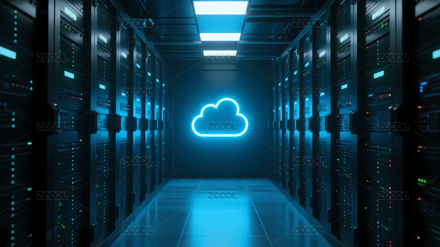 白色,深色,排列,灯光,云朵,服务器,机柜,多彩,点缀,环境