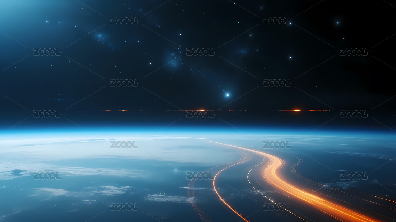 金色,渐变,空间,夜空,天空,光带,深邃,蜿蜒,行星,轮廓