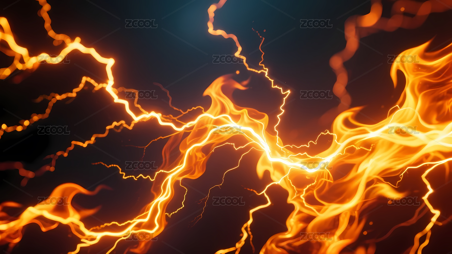 橙黄色闪电与火焰