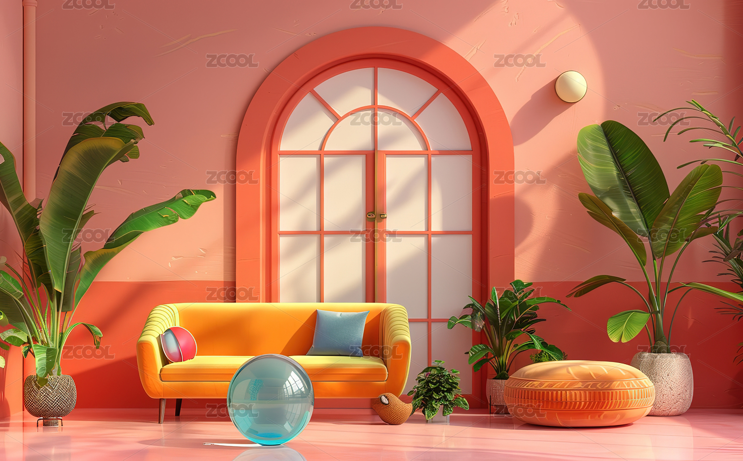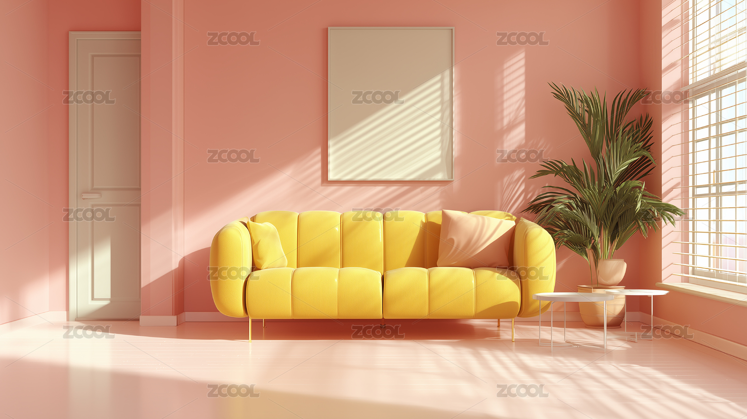 3D室内多巴胺色系极简背景墙