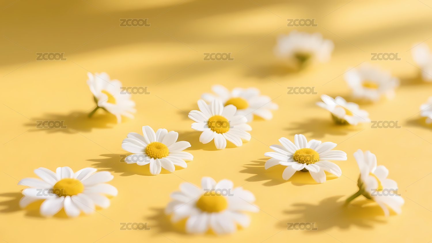 平铺,摄影,白色,雏菊,黄色,花瓣,背景,阴影,构图,花卉