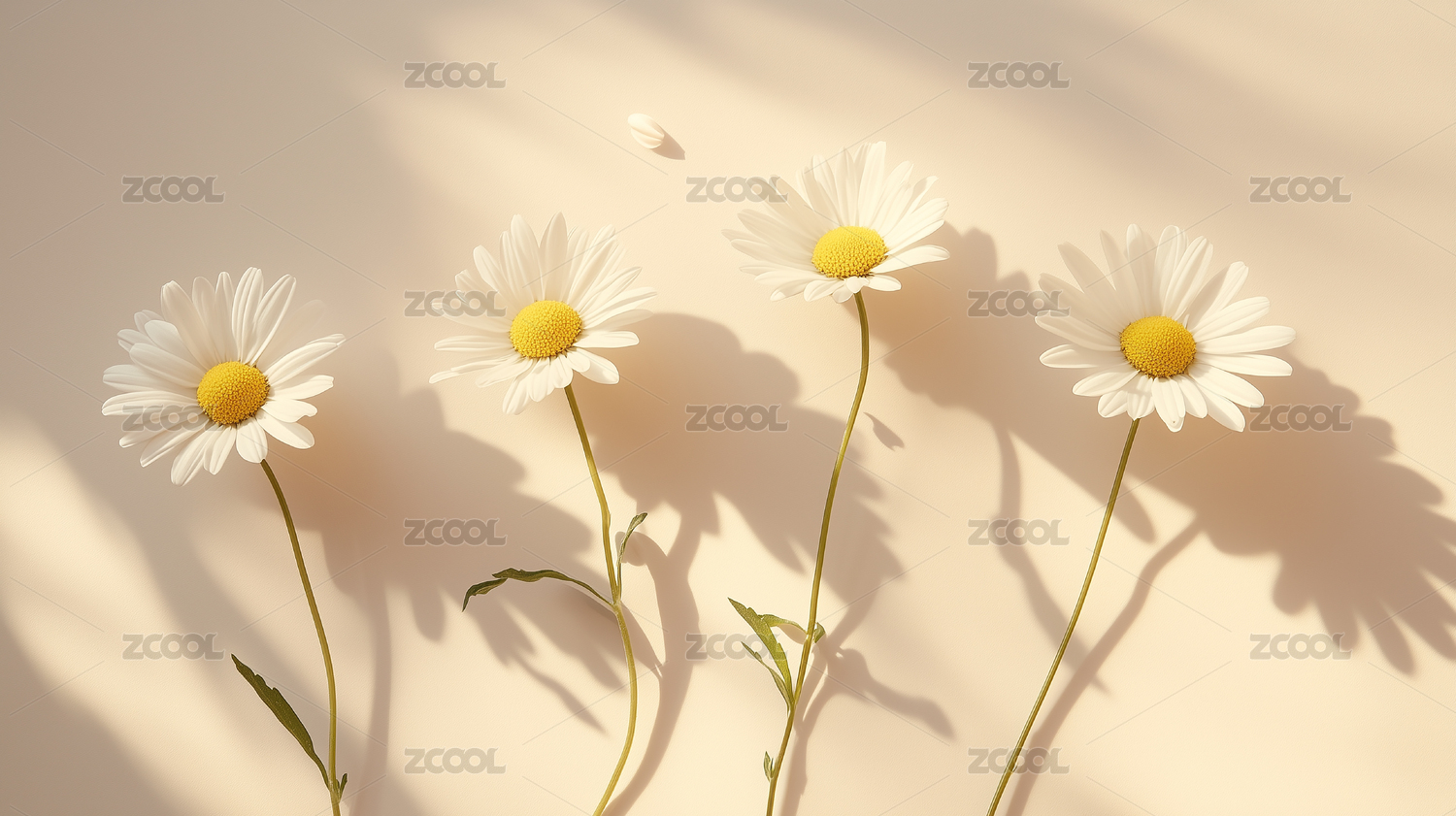 平铺,摄影,白色,雏菊,黄色,花瓣,背景,阴影,构图,花卉