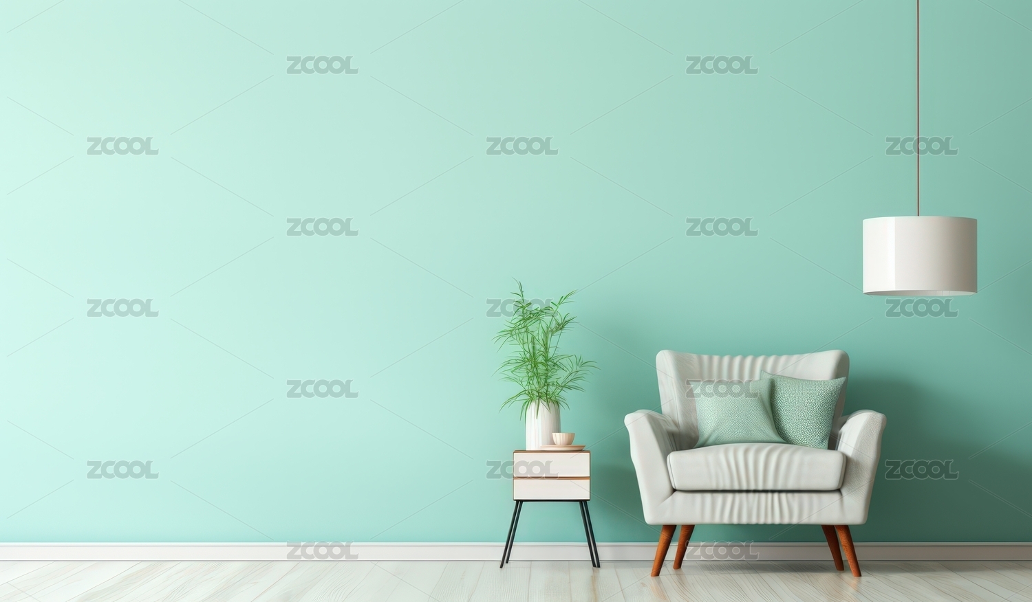 现代米绿墙三吊灯客厅