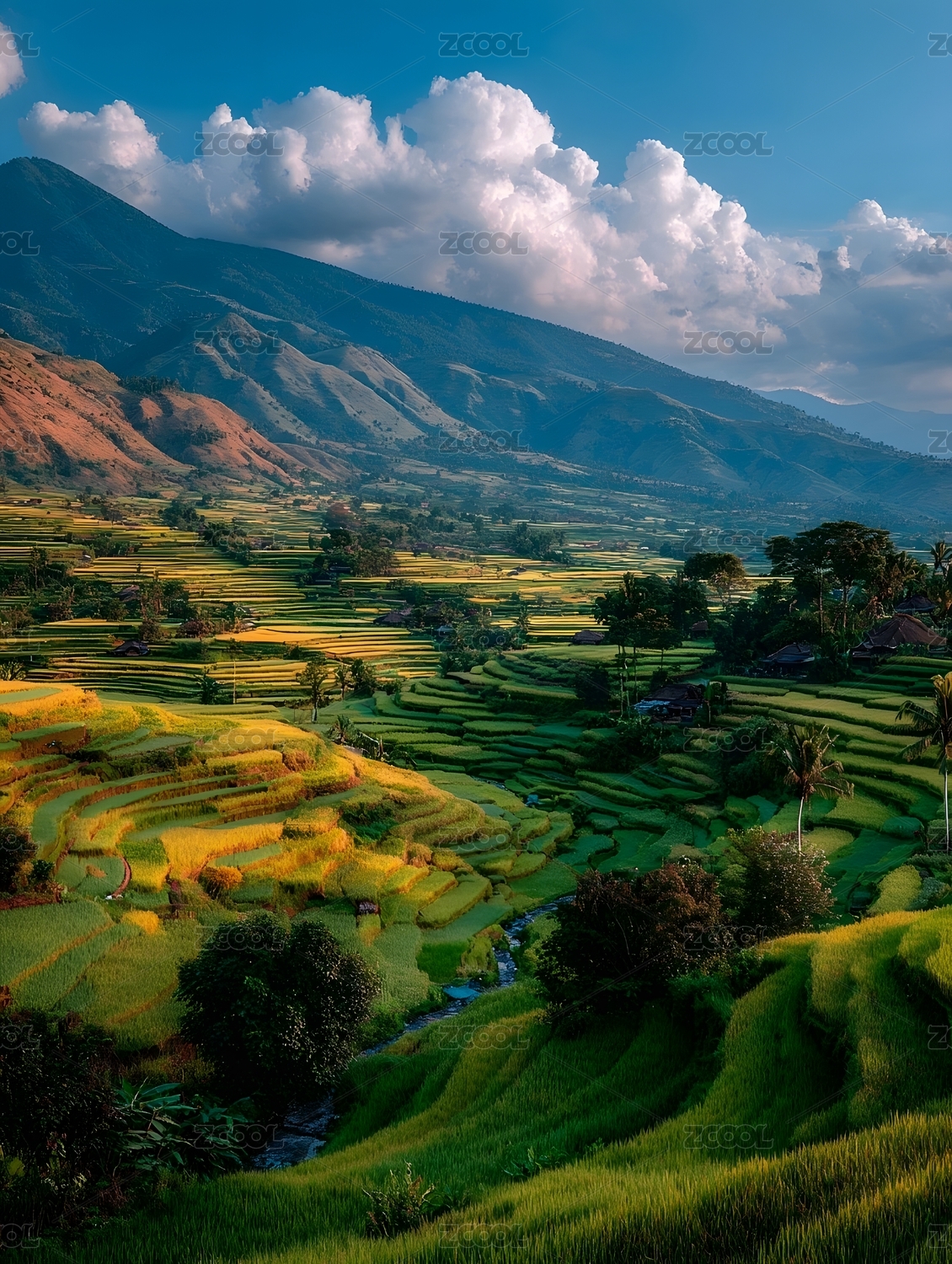梯田,绿色,农业,景观,农舍,山脉,热带,阳光,东南亚,乡村