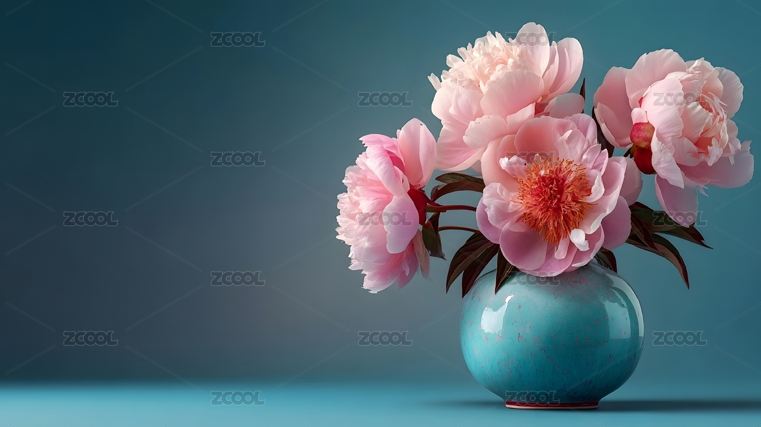 牡丹,花卉,花瓶,玻璃,反射,光线,背景,渐变,摄影,静物