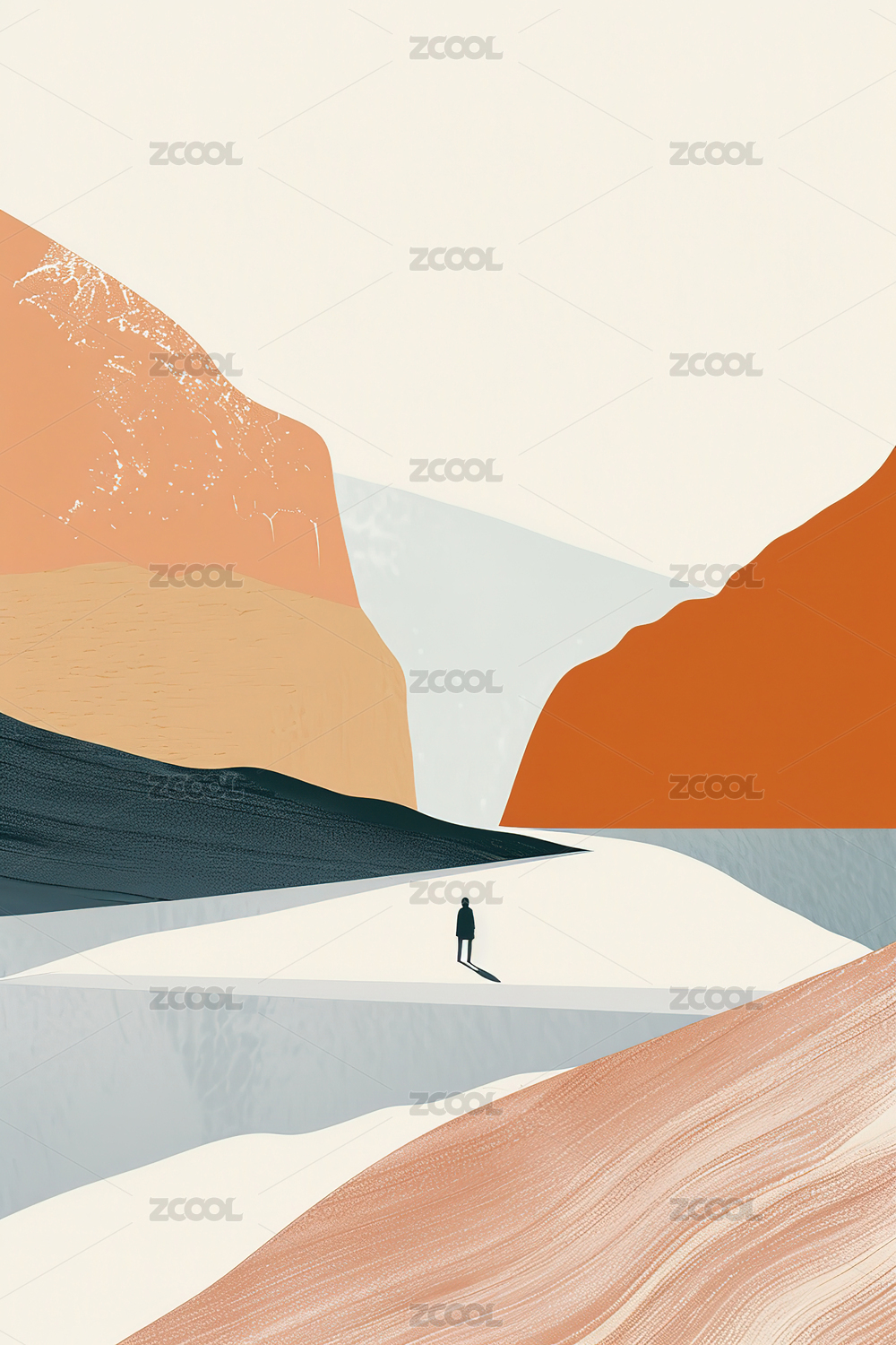 抽象沙漠流沙手绘风格山水画插画背景装饰画