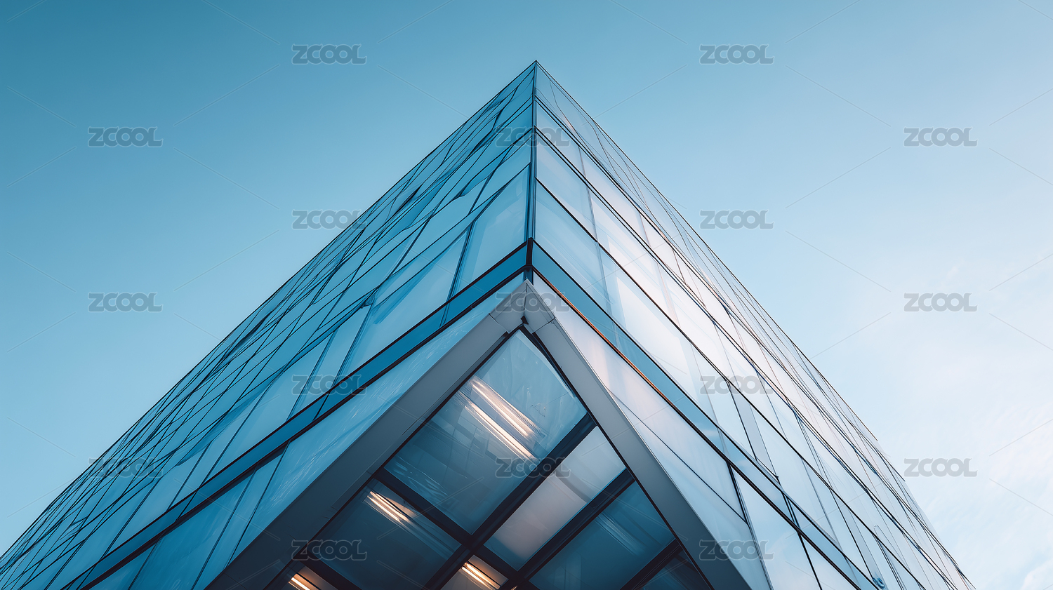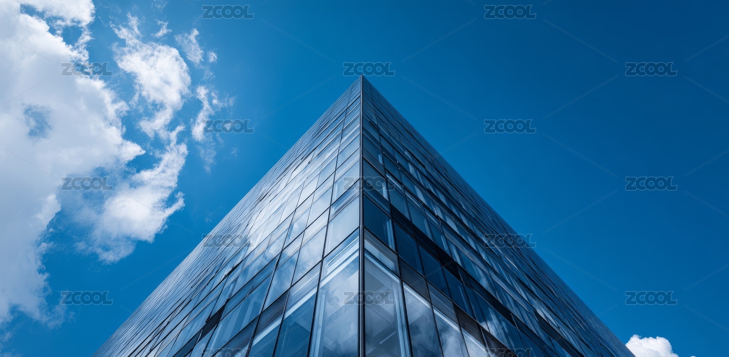 仰视角度玻璃窗外观办公大楼