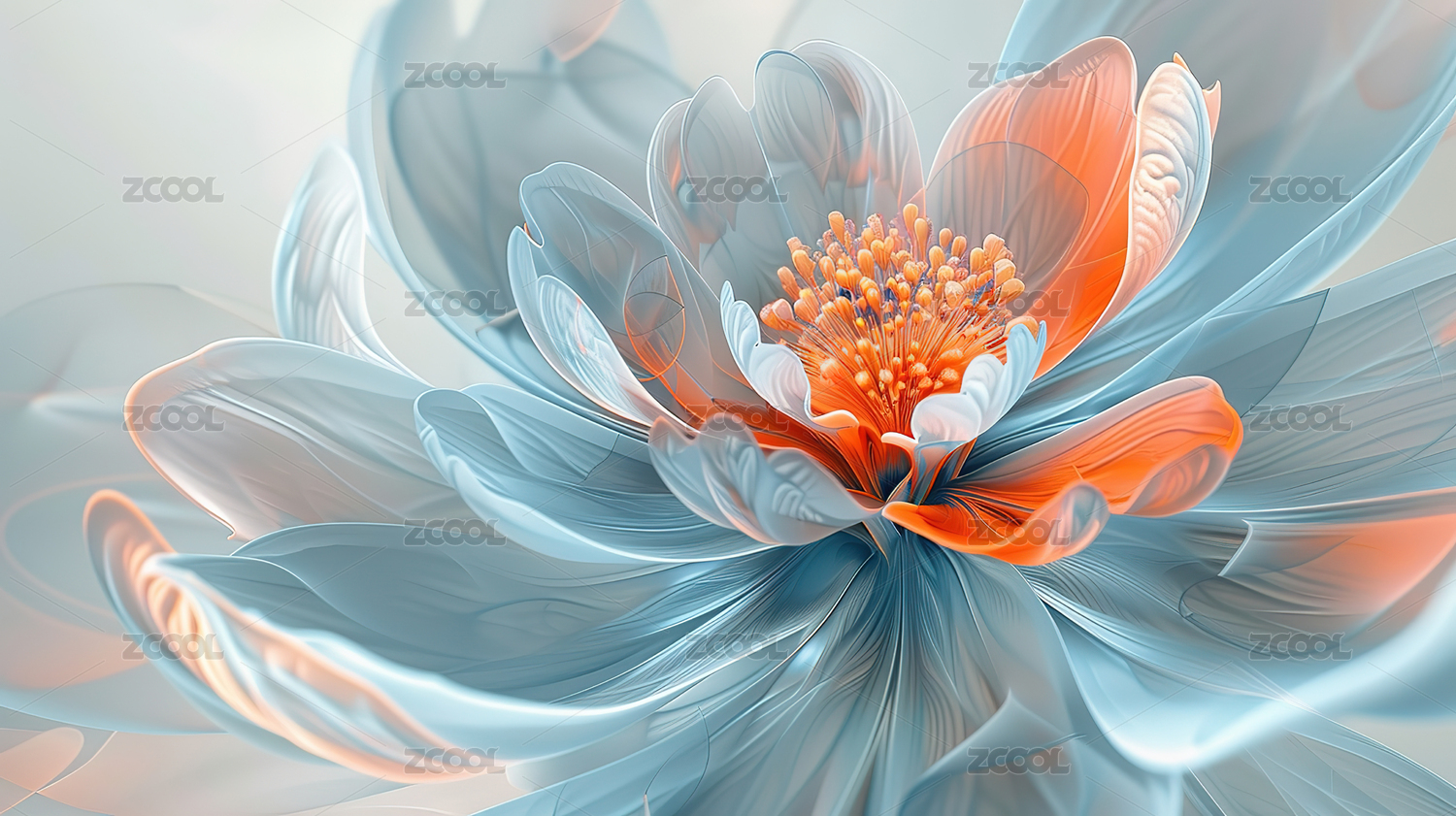 橙蓝花卉抽象艺术数字绘画
