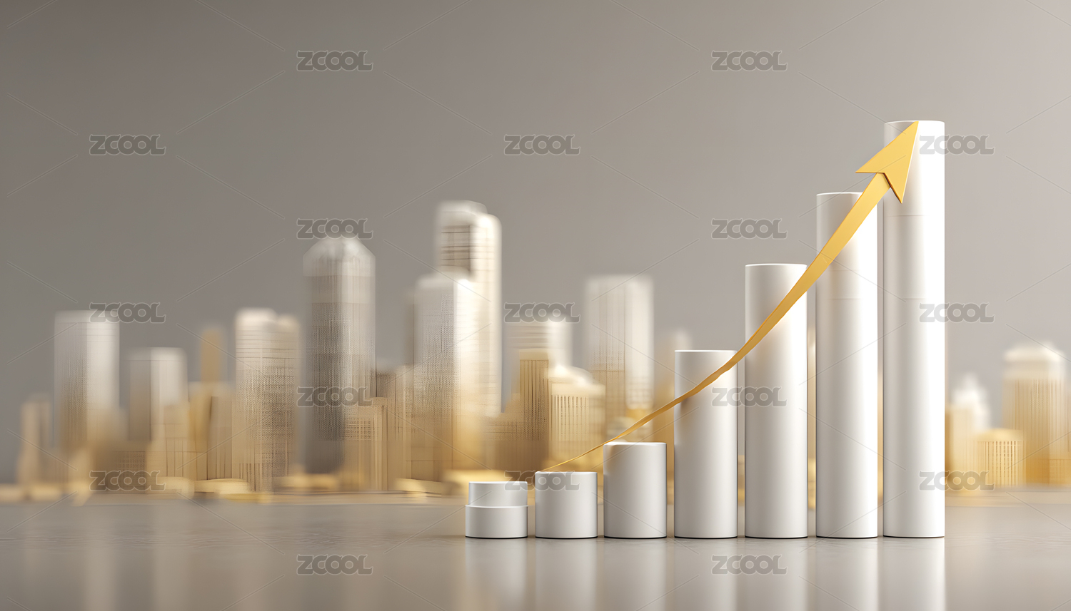 金色增长箭头与城市天际线