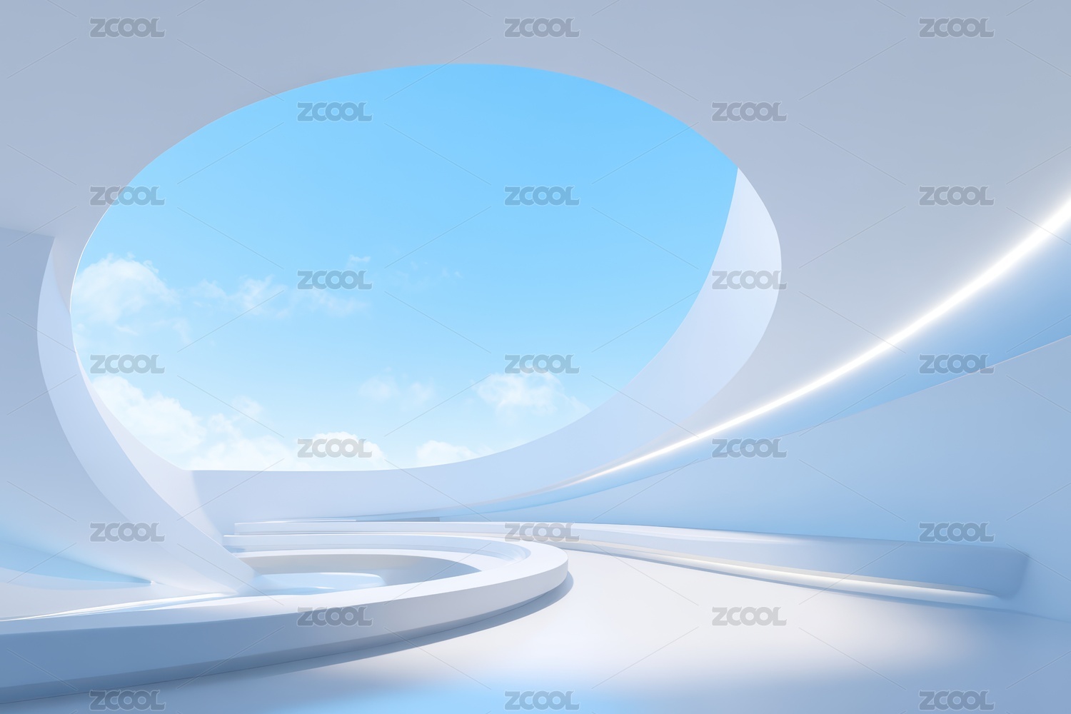 蓝天,白云,建筑,曲线,简洁,现代,几何,户外,天空