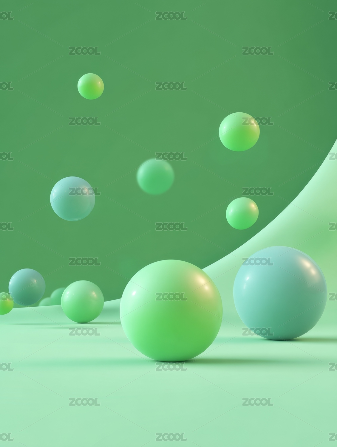 球体,绿色,蓝色,黄色,悬浮,背景,简洁,几何,现代,设计