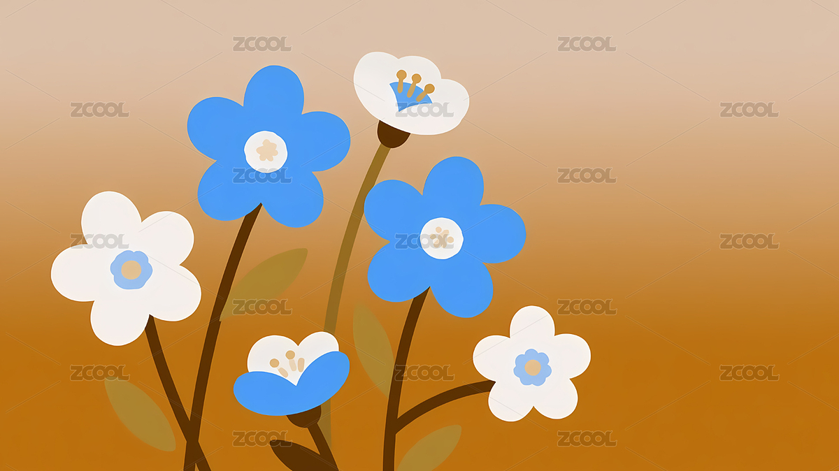 蓝色花朵的美丽插画