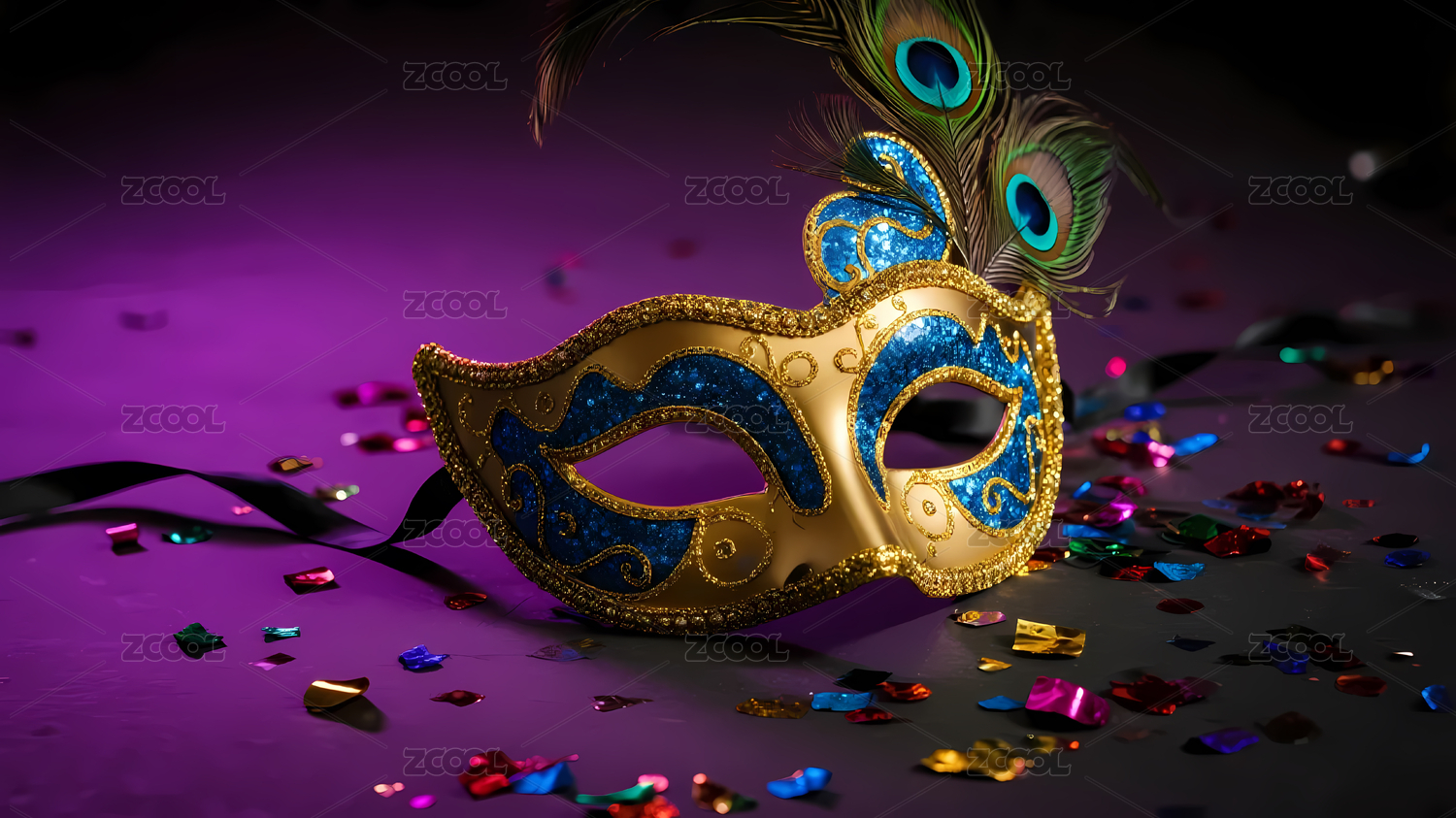 金蓝面具与亮片散落