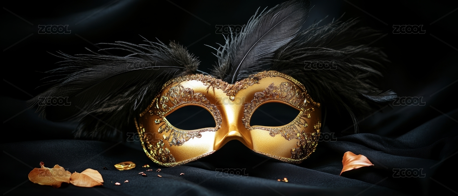 主视觉,装饰,场景,艺术,氛围,面具,华丽,陈列,金色,羽毛