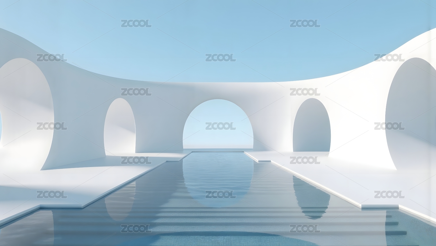 白色,极简,对称,线条,空间,现代,纯净,几何,天空,水面