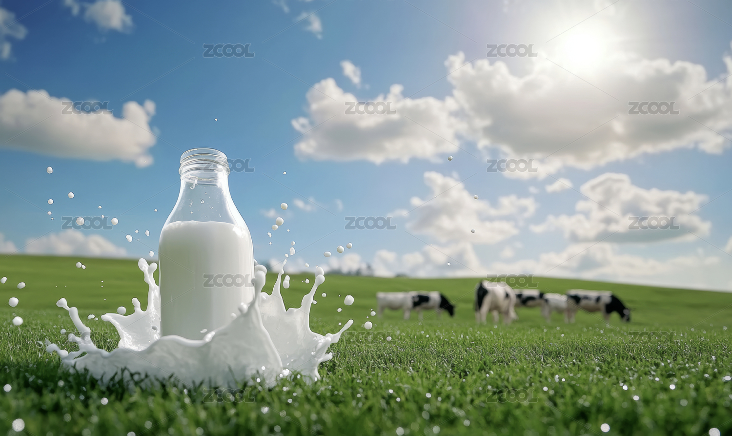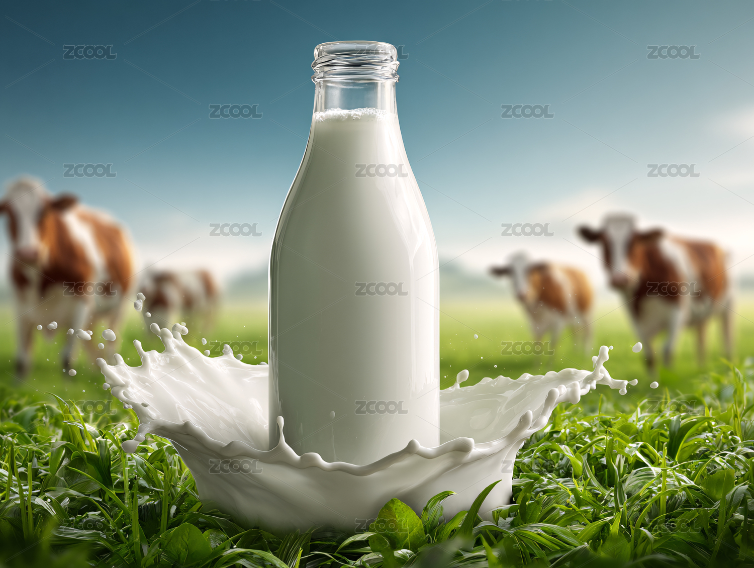 清新,牧场,牛奶,场景,自然,田园,奶瓶,草甸,纯净,生态