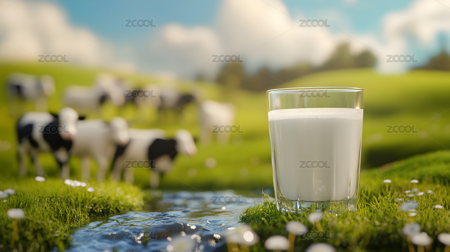 清新牧场牛奶场景