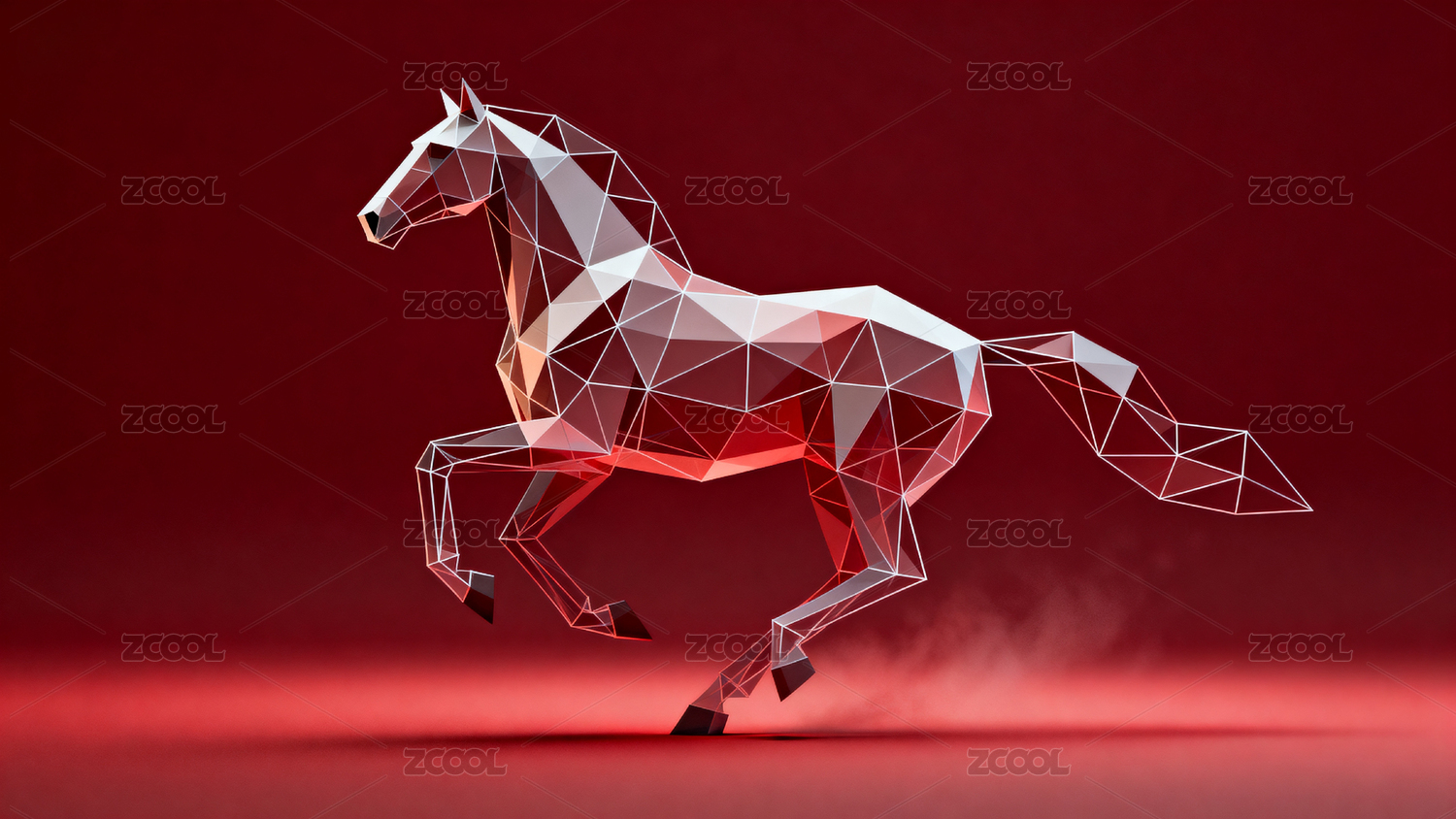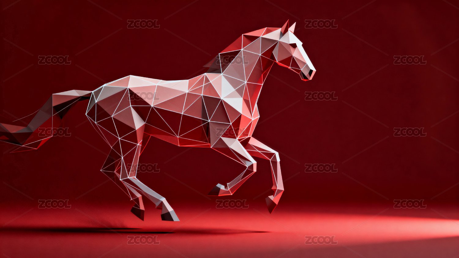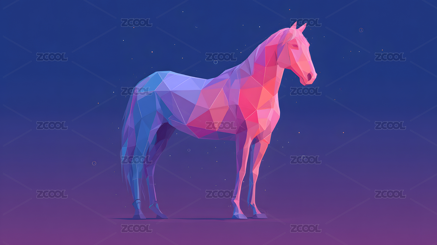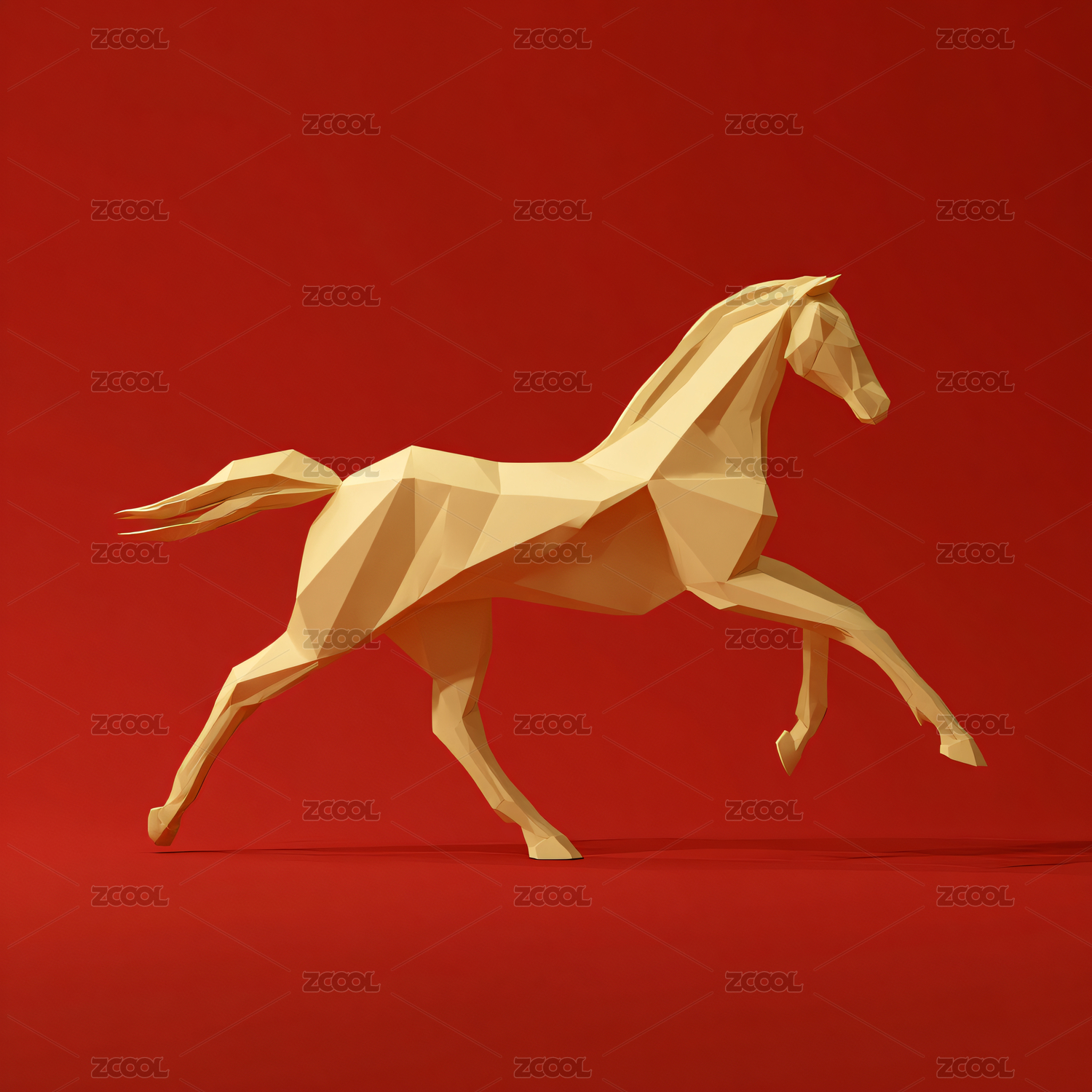 低多边形,橙色,马,几何,立体,艺术,造型,简约,现代,设计
