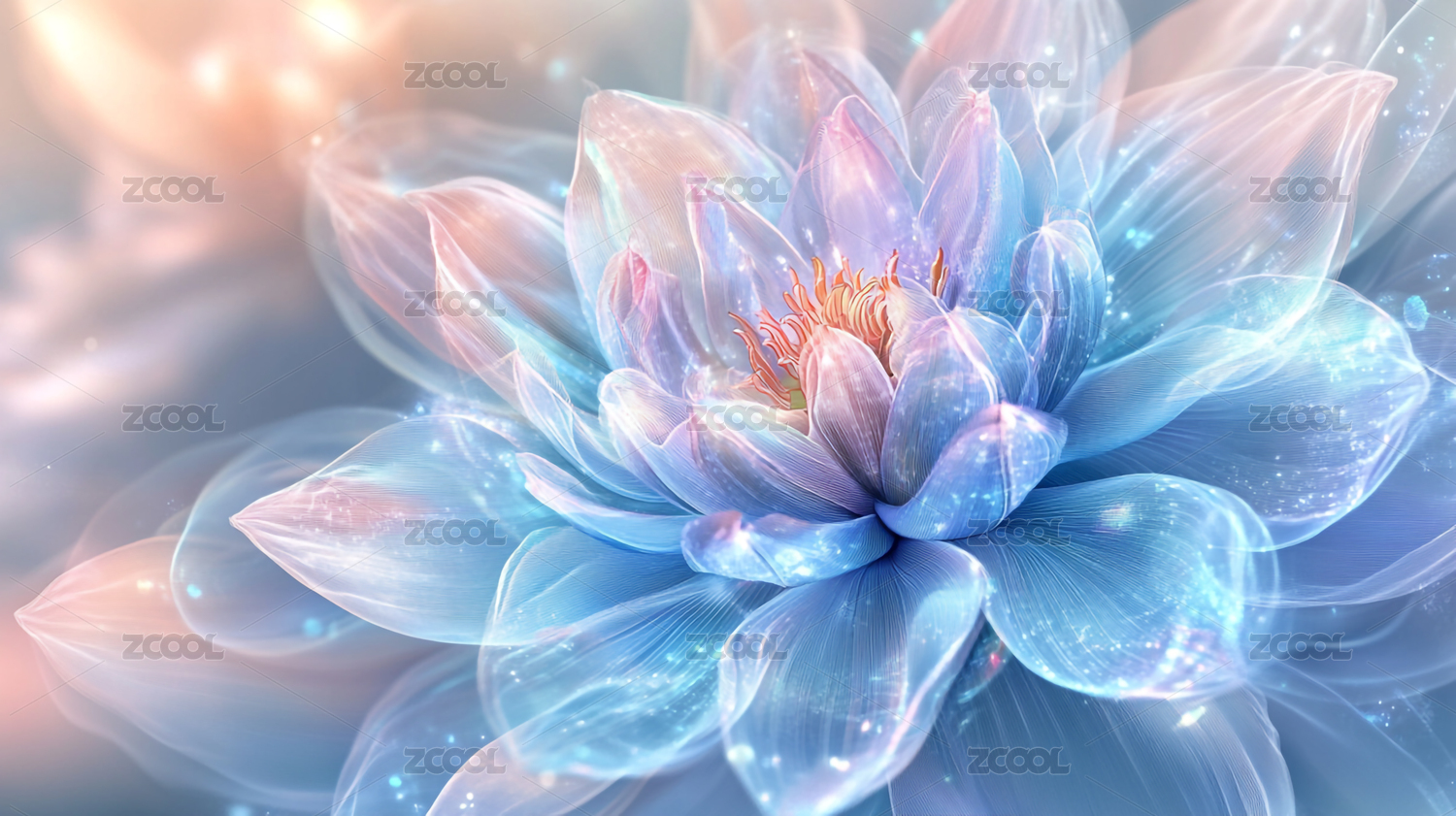 透明蓝色渐变材质莲花花朵