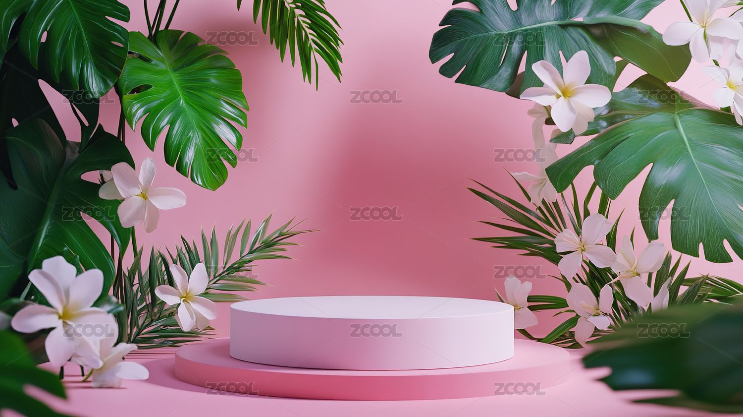 粉红色背景下桌子上的花朵和蜡烛的特写镜头