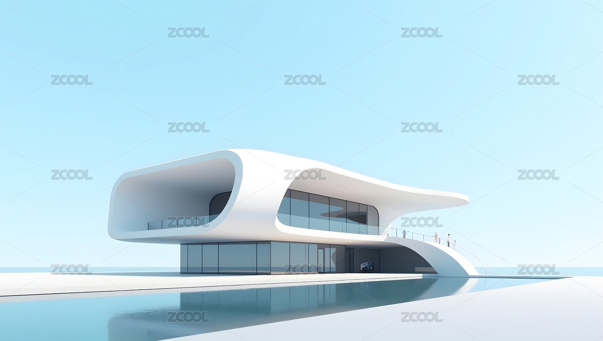 白色,极简,线条,现代,纯净,几何,天空,水面,建筑,池塘