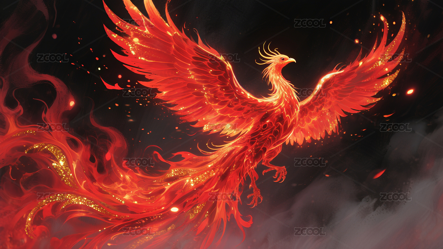火焰凤凰绚丽神话场景