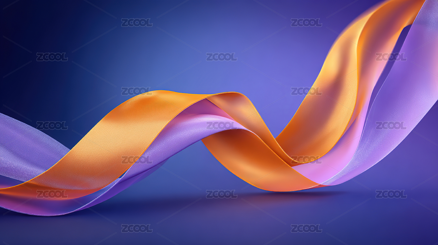 橙紫交织的丝带在紫色背景上流动