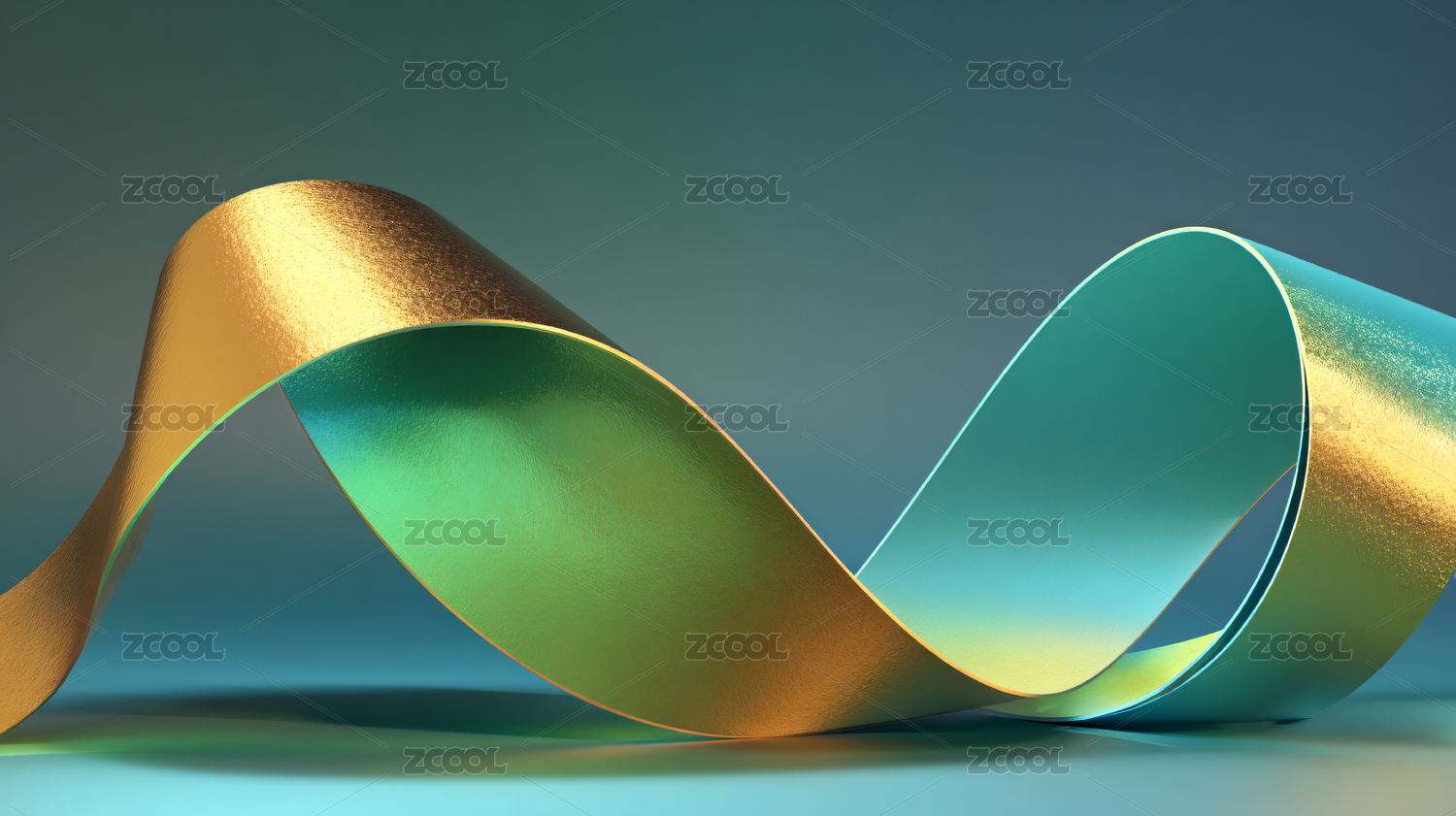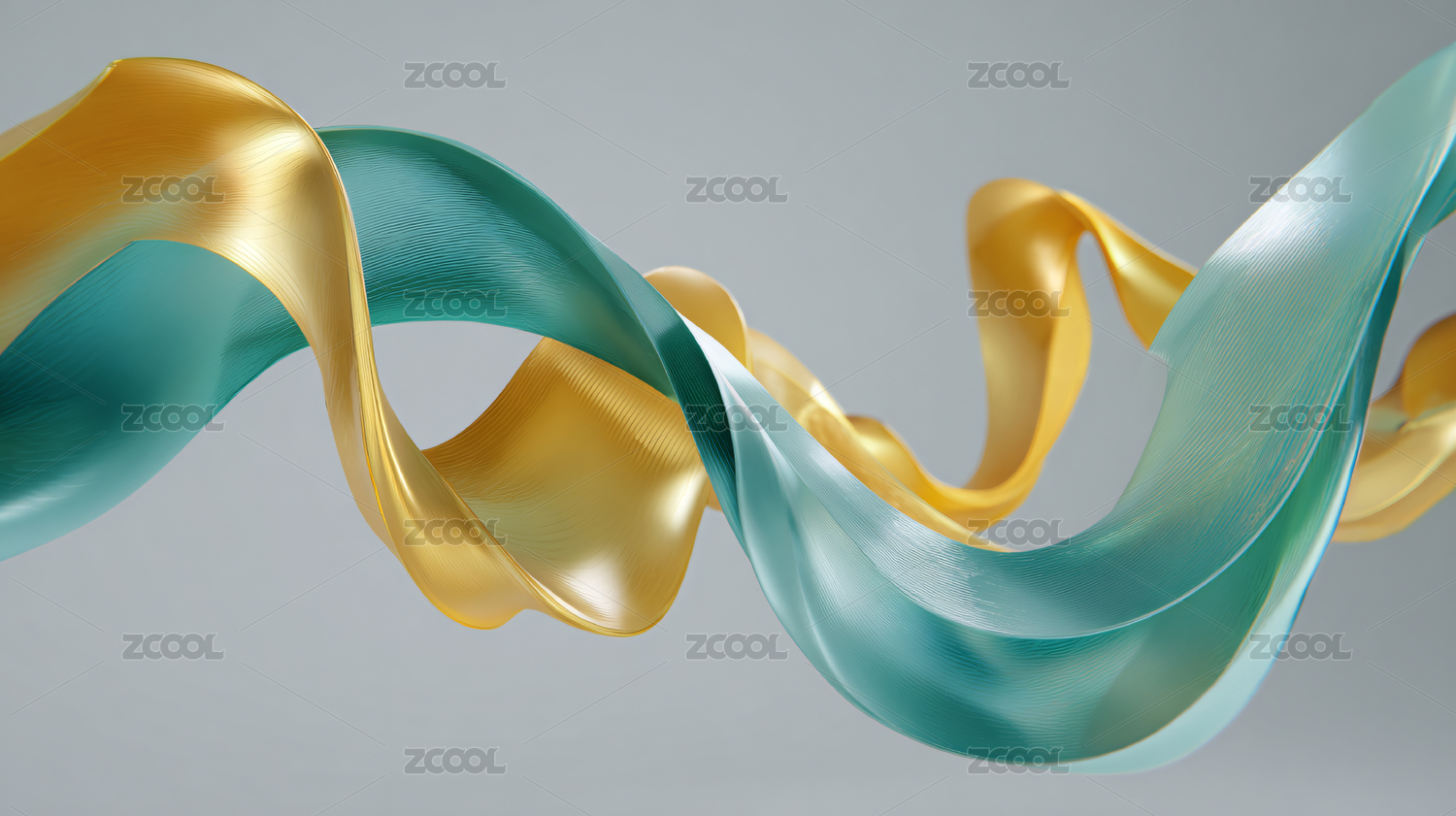 蓝绿,金黄,光滑,光泽,浅灰,背景,灵动,扭转,优雅,韵律