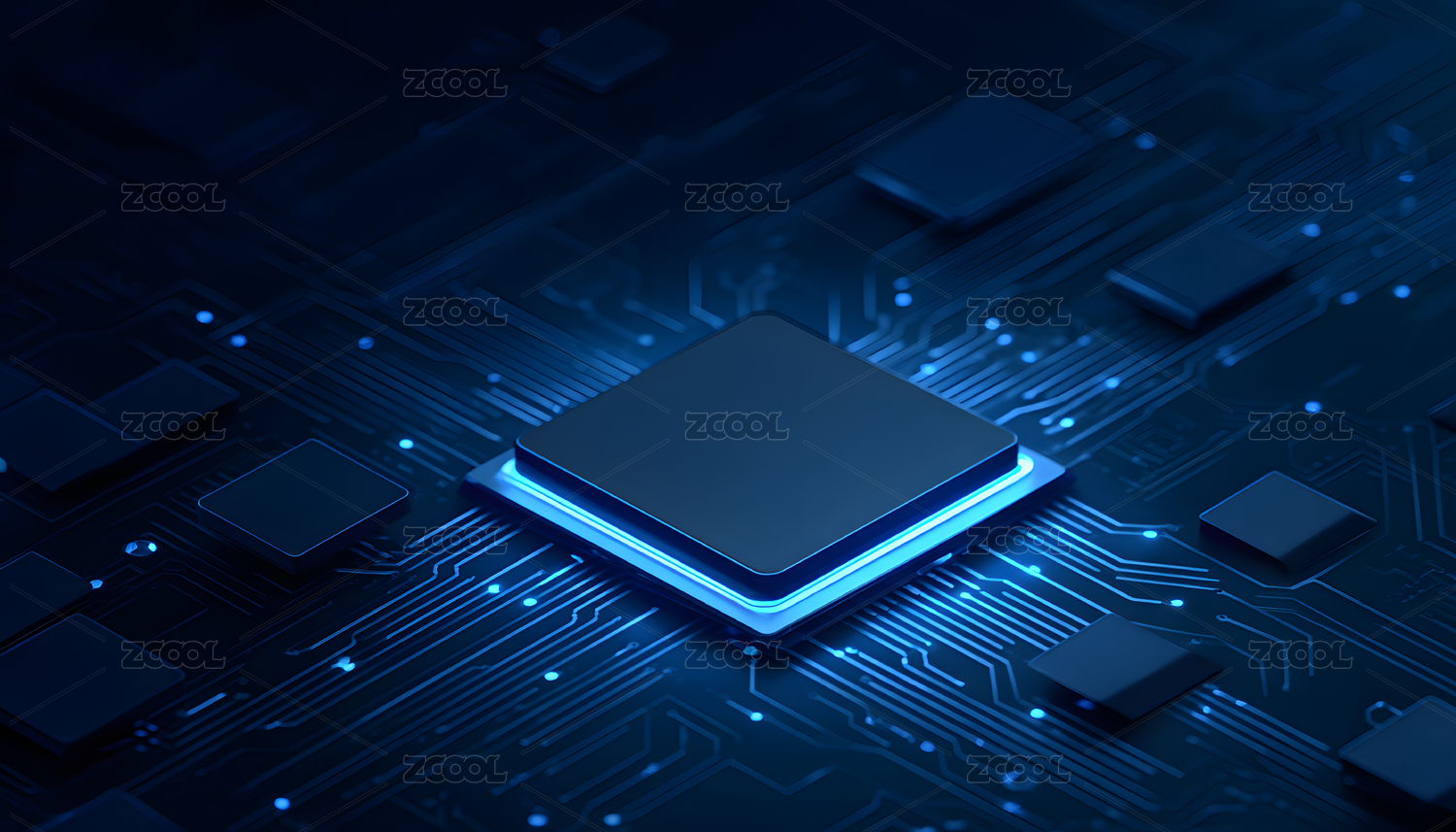 数码科技蓝色未来微芯片处理器抽象海报背景