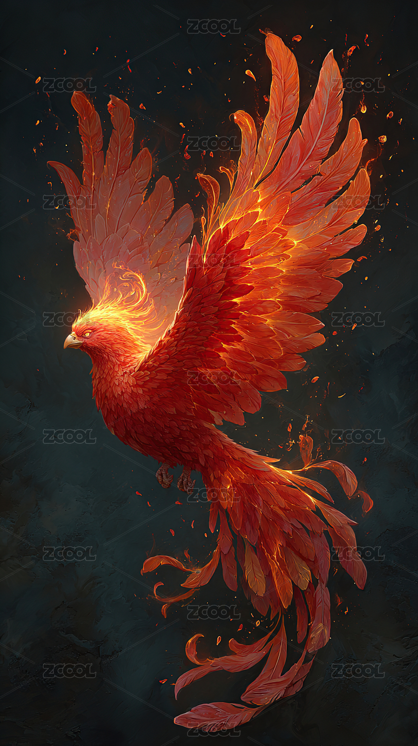 中国古代神话凤凰神兽国潮风格节日艺术背景