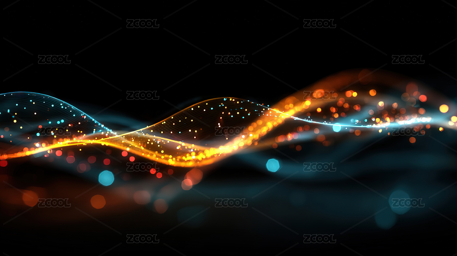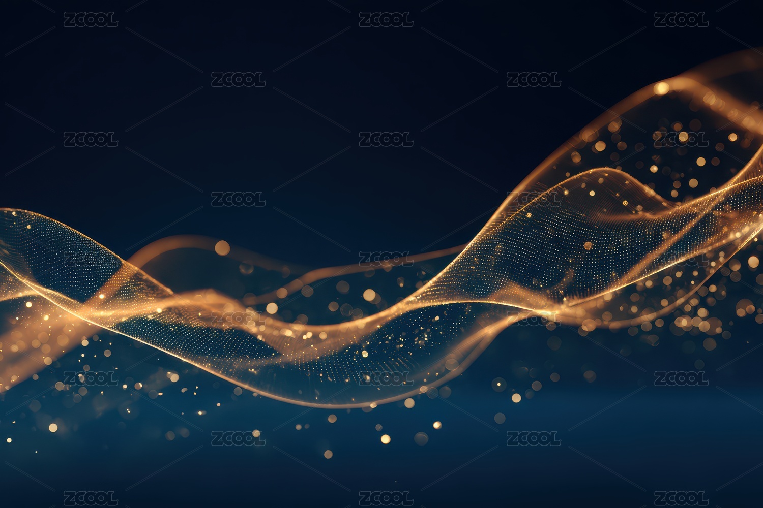 金色波浪与光点交织的艺术场景