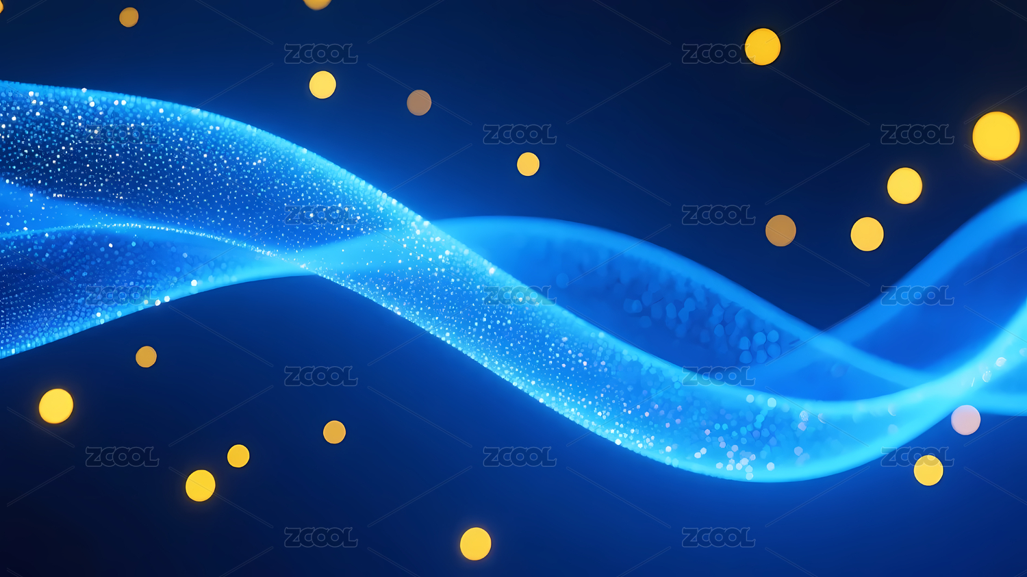 蓝色波浪与金色光点