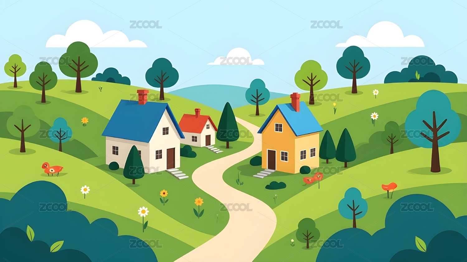 乡村田园风景插画