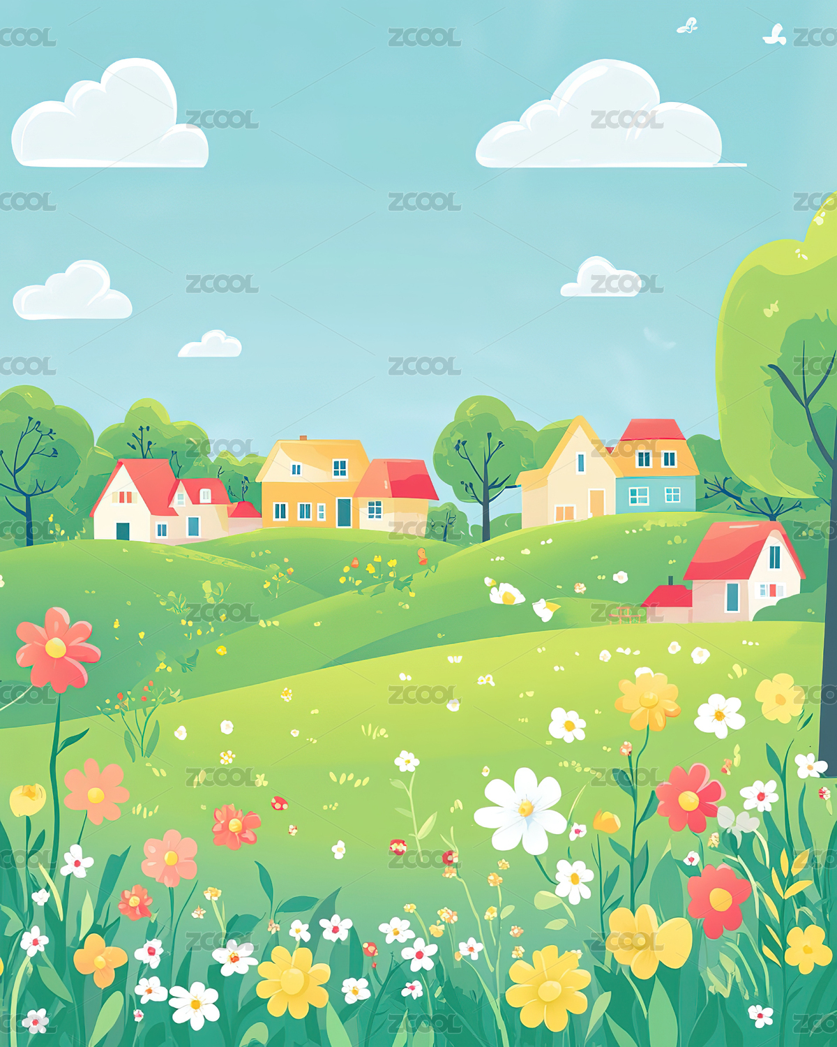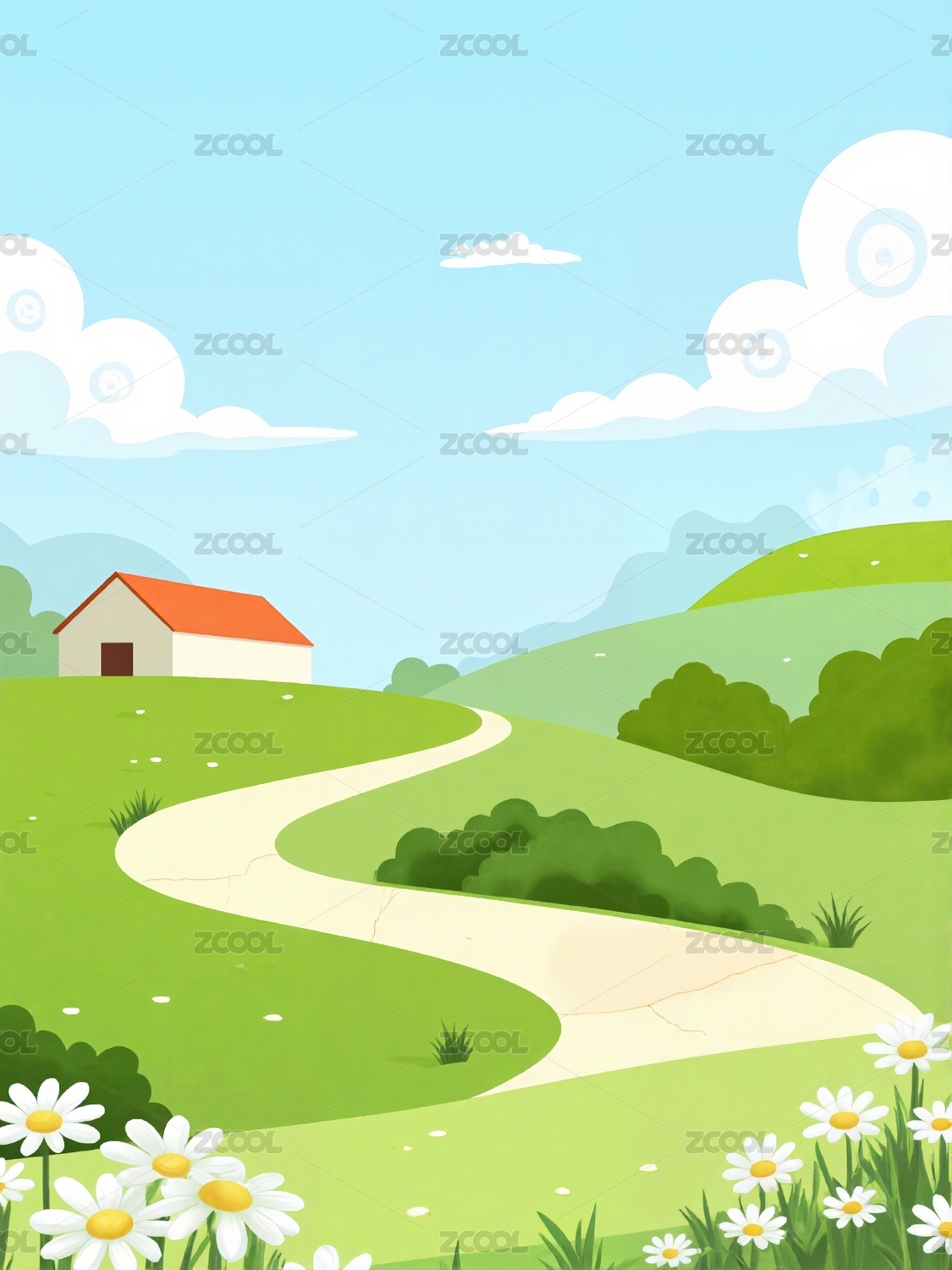 春天自然草地插画